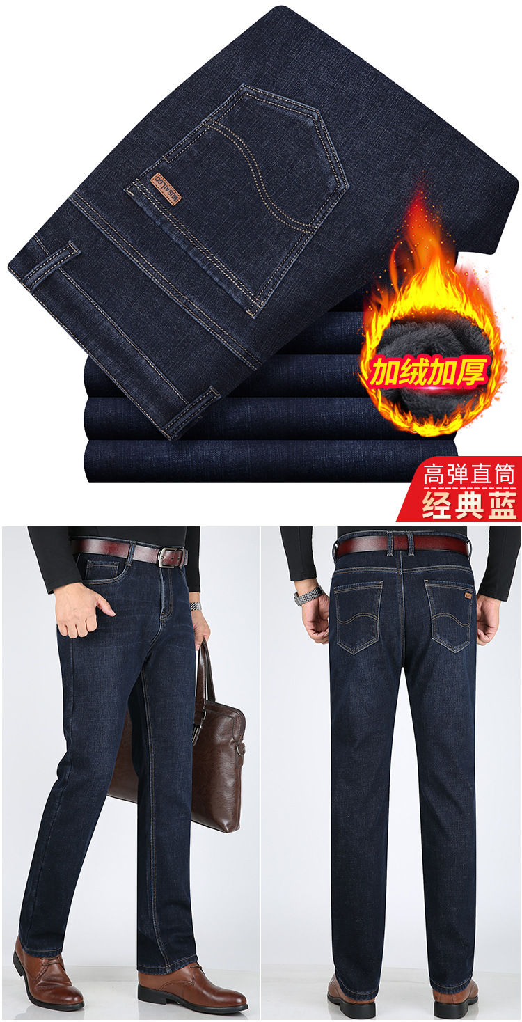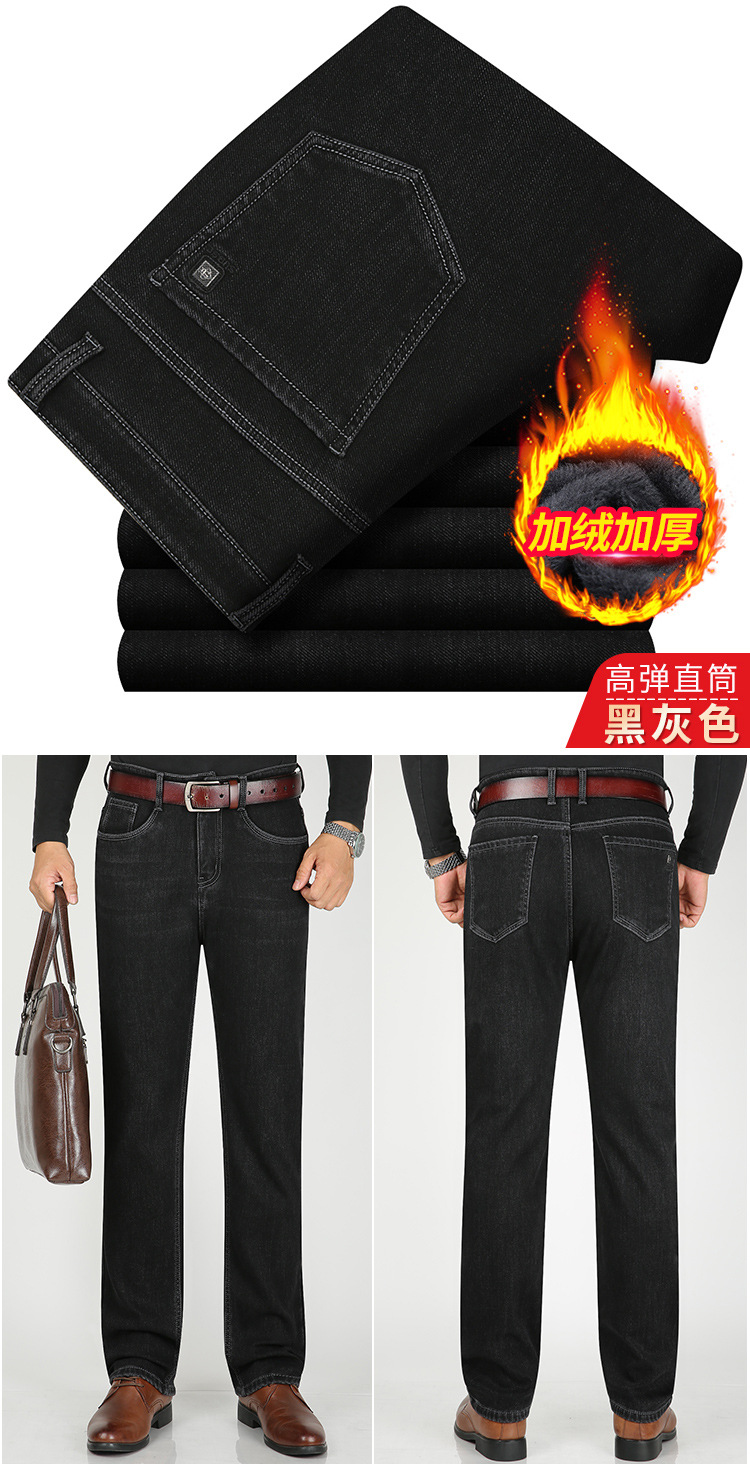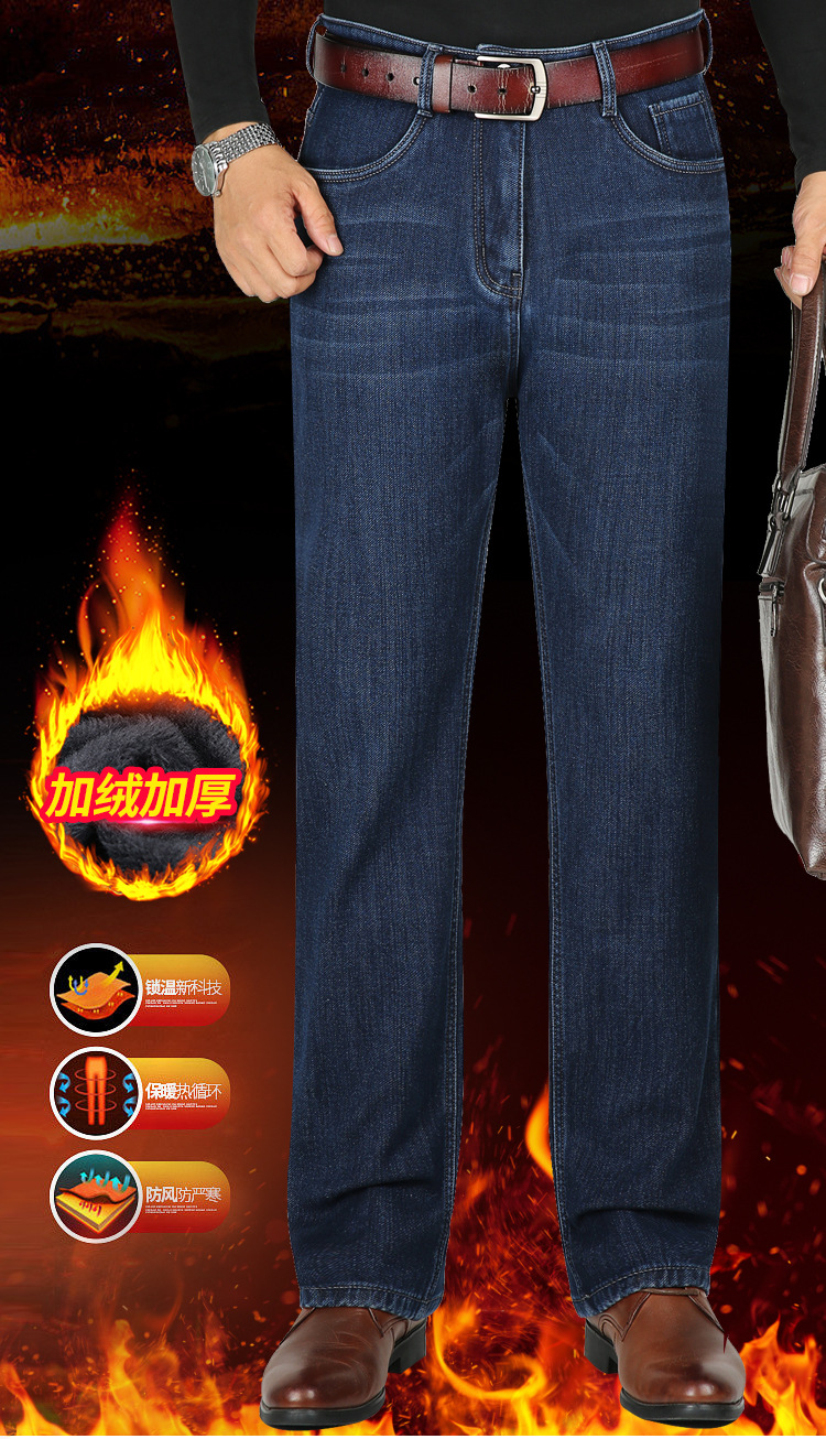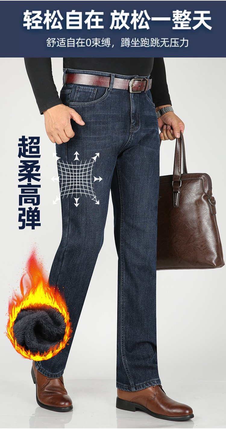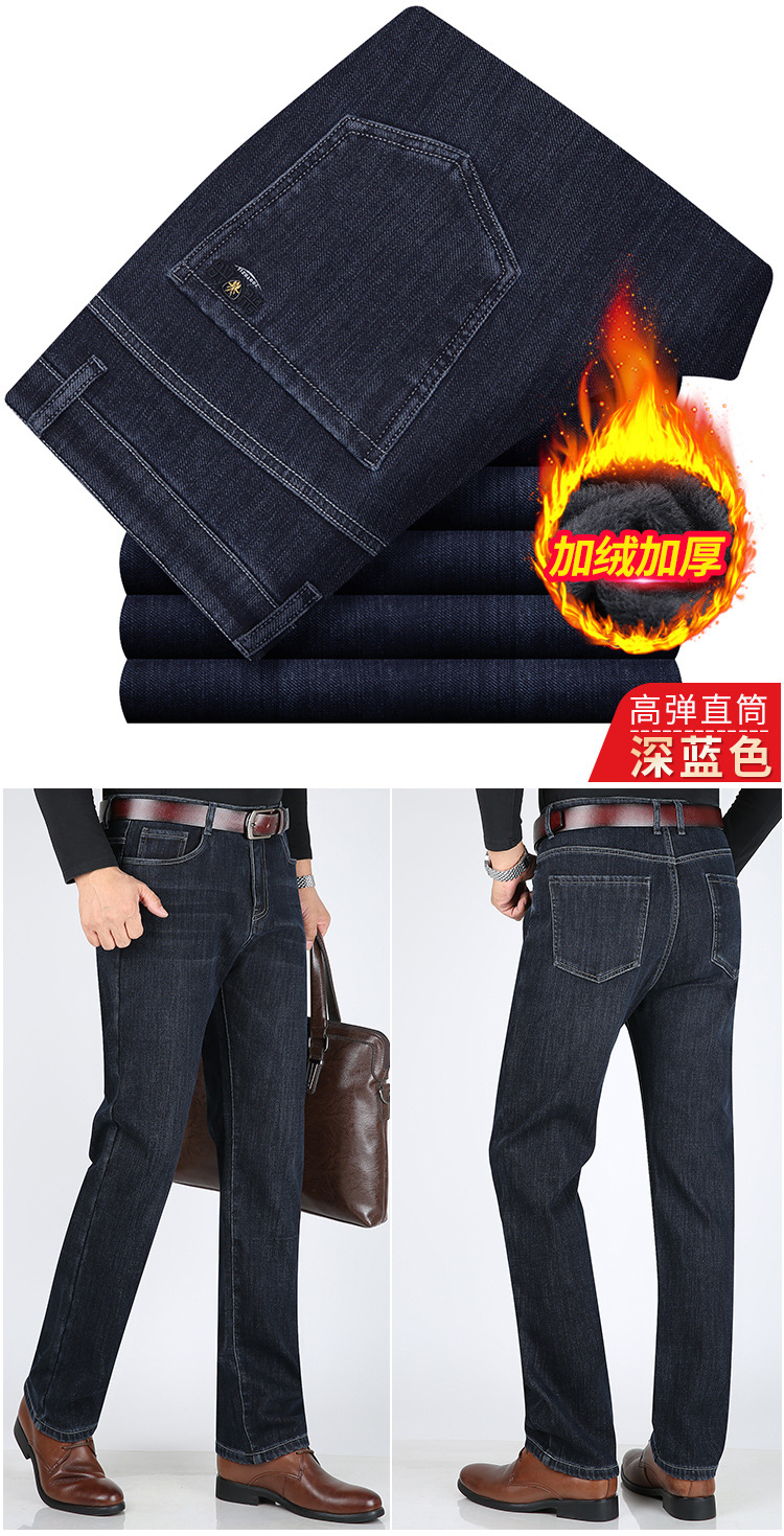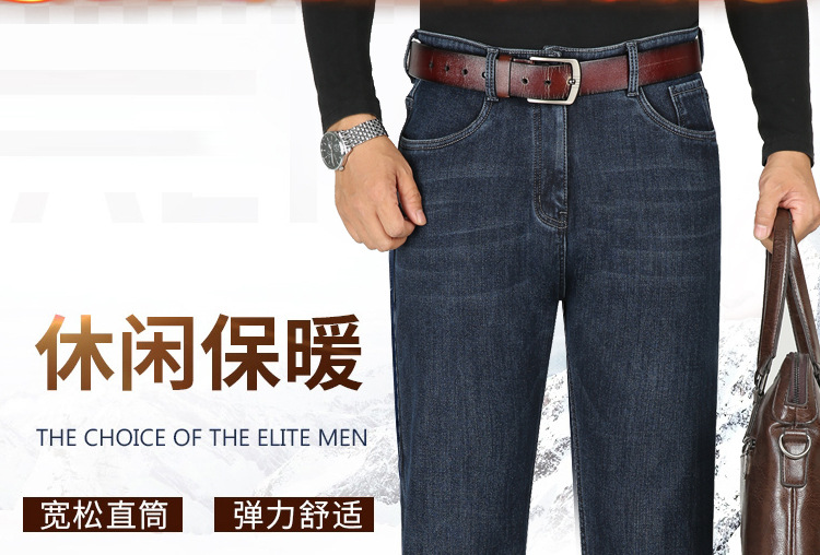 기모 두꺼운 남자의 데님 바지 높은 탄성 느슨한 스트레이트 하이 웨이스트 깊은 사업 중년 및 노인 남자의 청바지