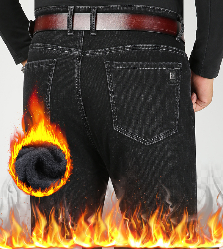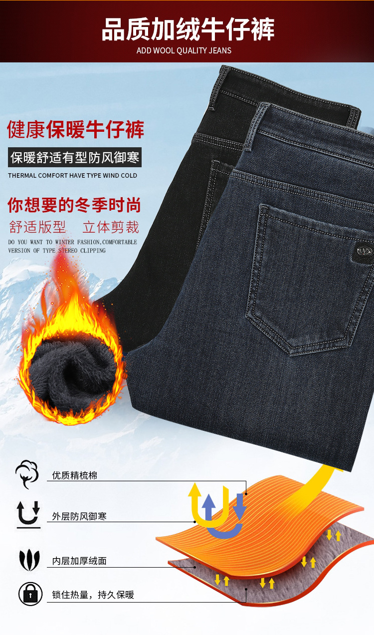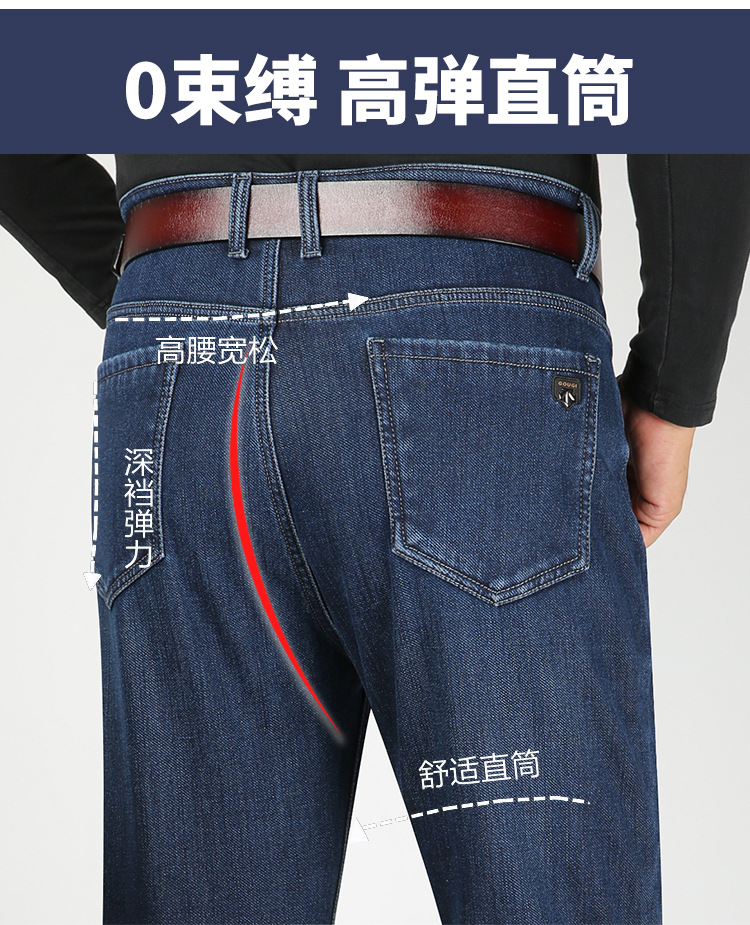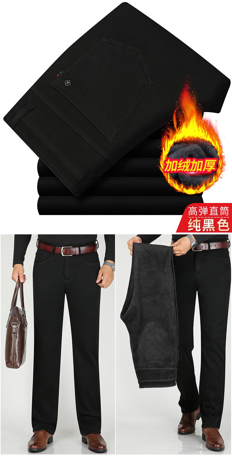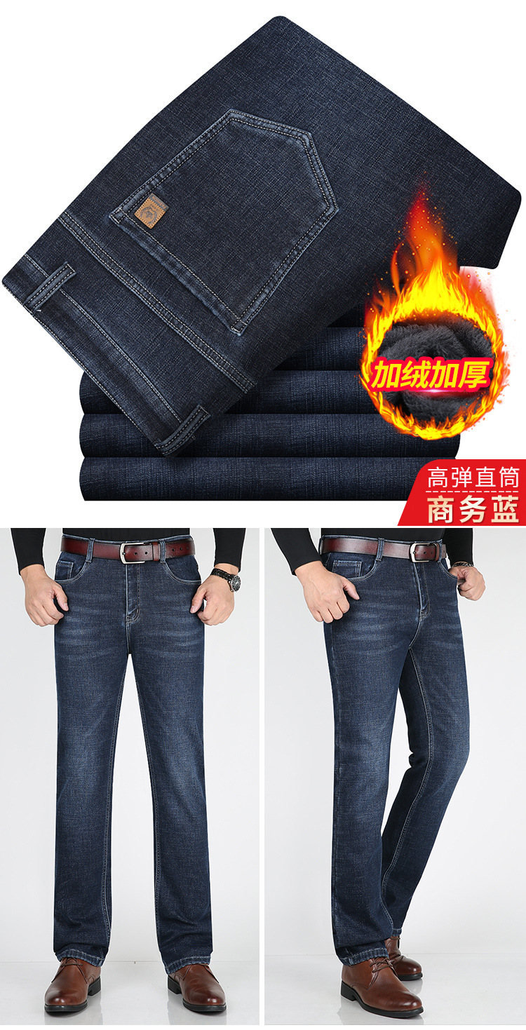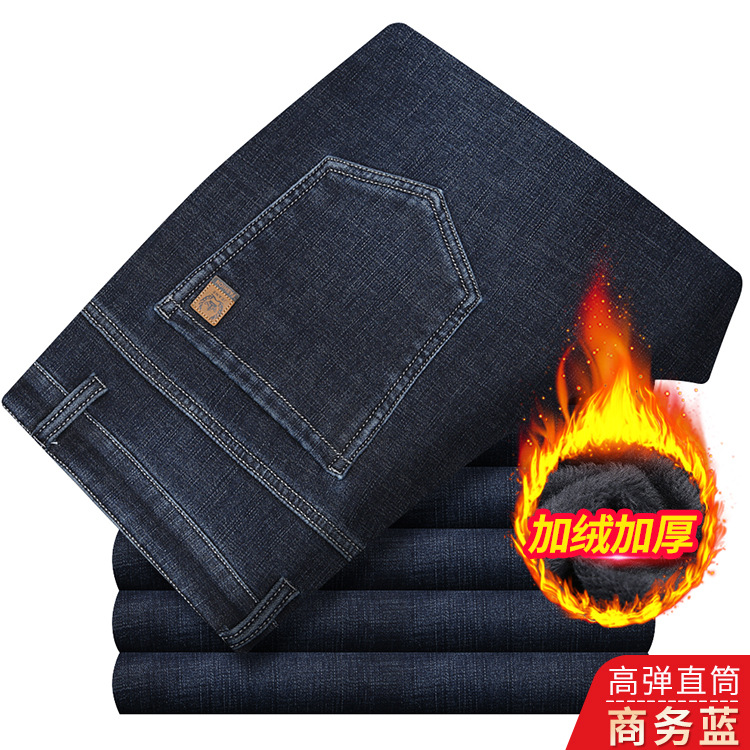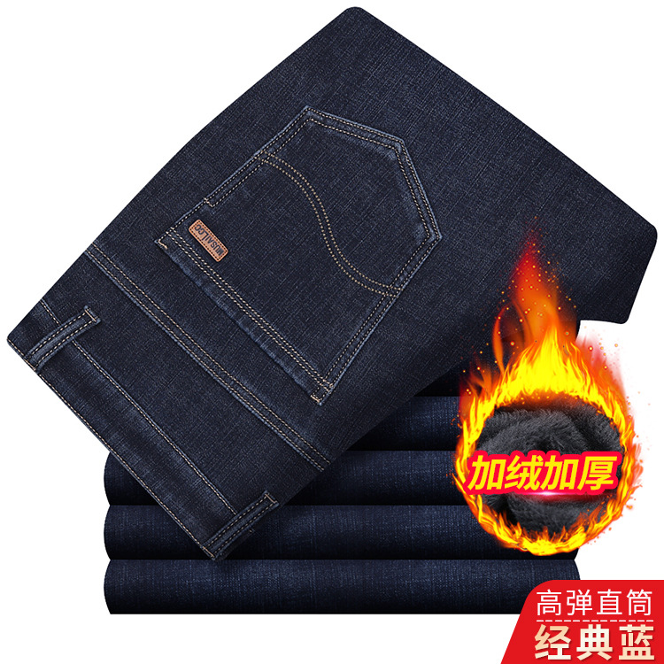 기모 두꺼운 남자의 데님 바지 높은 탄성 느슨한 스트레이트 하이 웨이스트 깊은 사업 중년 및 노인 남자의 청바지