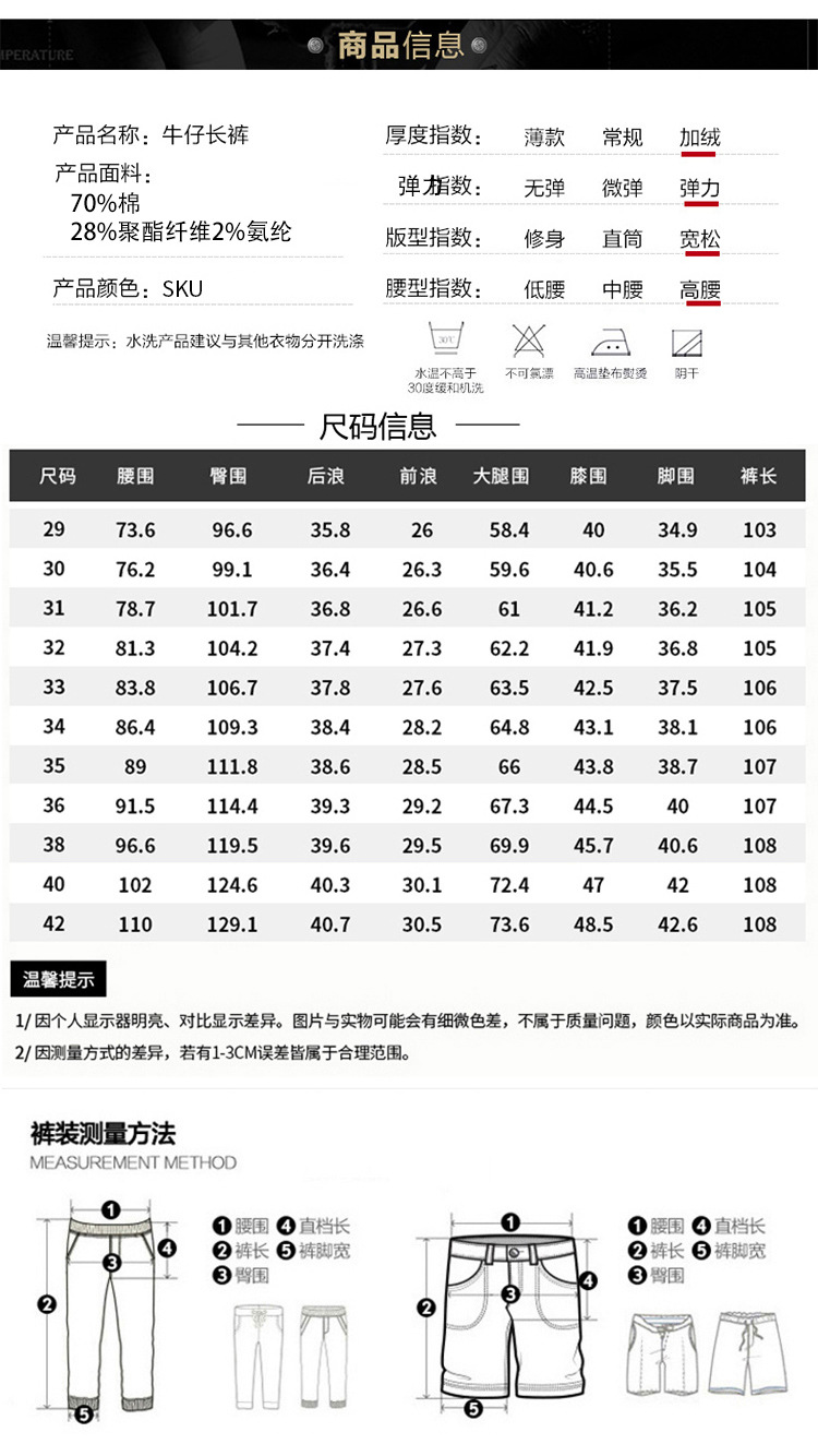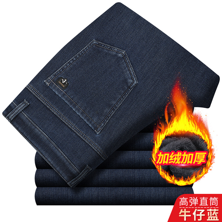 기모 두꺼운 남자의 데님 바지 높은 탄성 느슨한 스트레이트 하이 웨이스트 깊은 사업 중년 및 노인 남자의 청바지스토어 가기