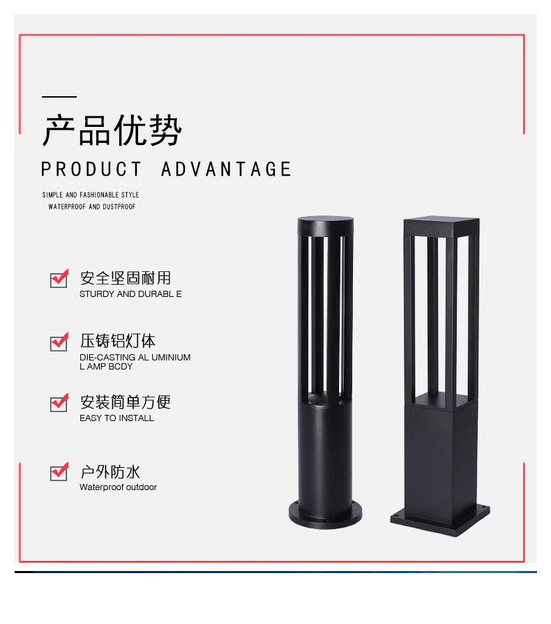 야외 태양 잔디 램프 방수 정원 램프 별장 정원 조경 램프 간단한 현대 광장 원형 가로등 포스트