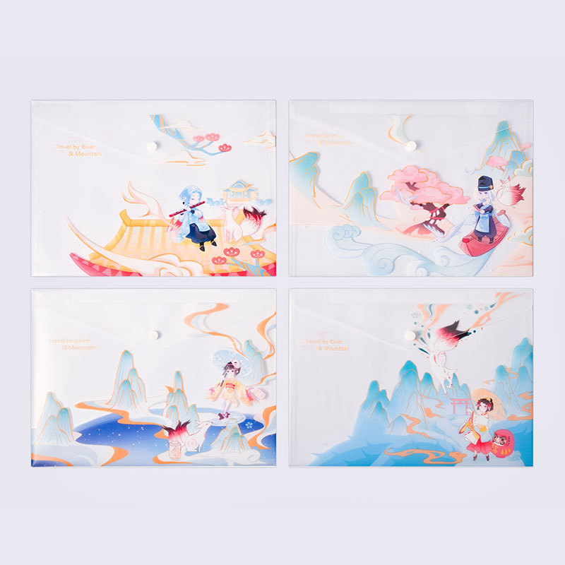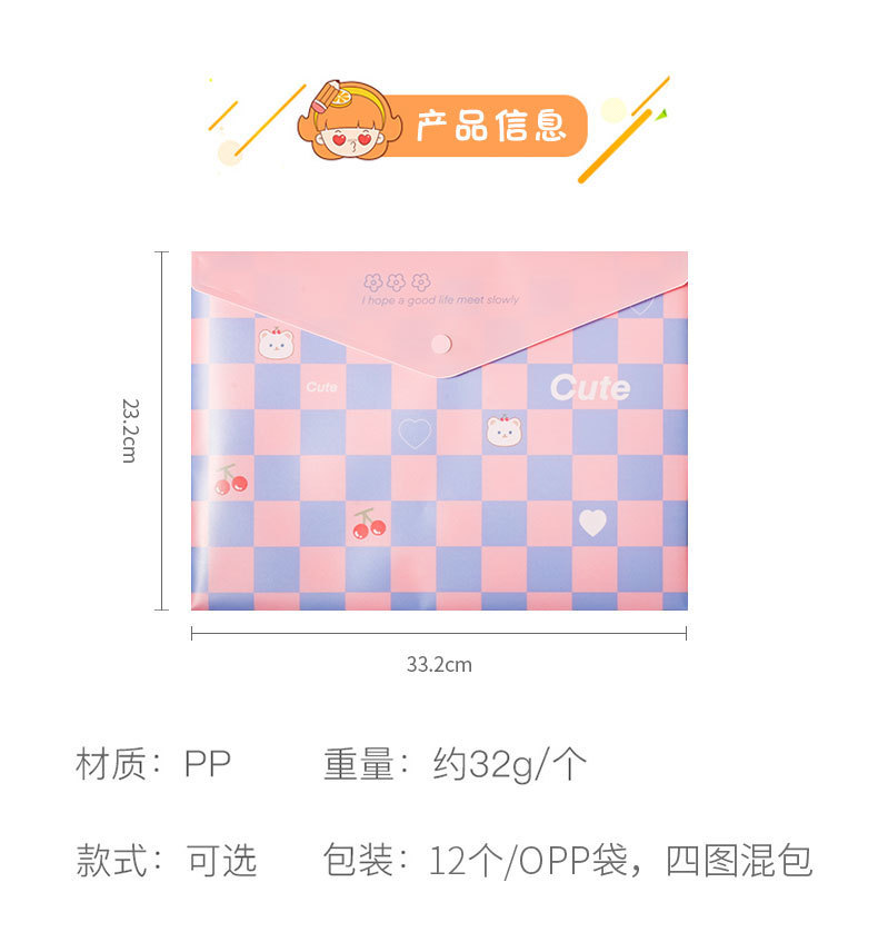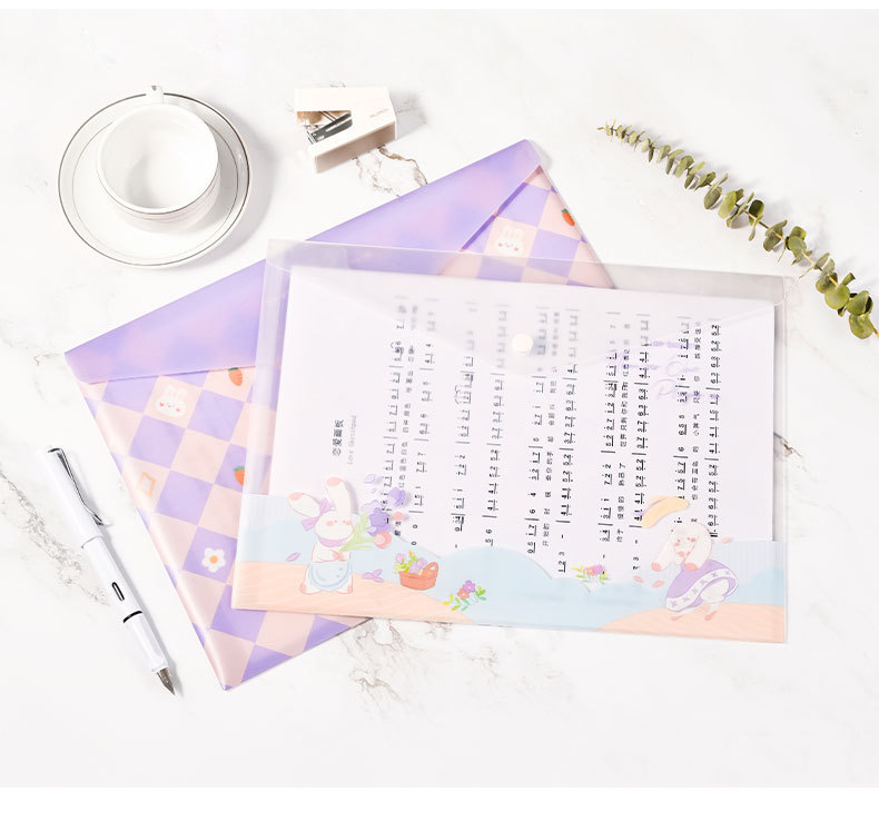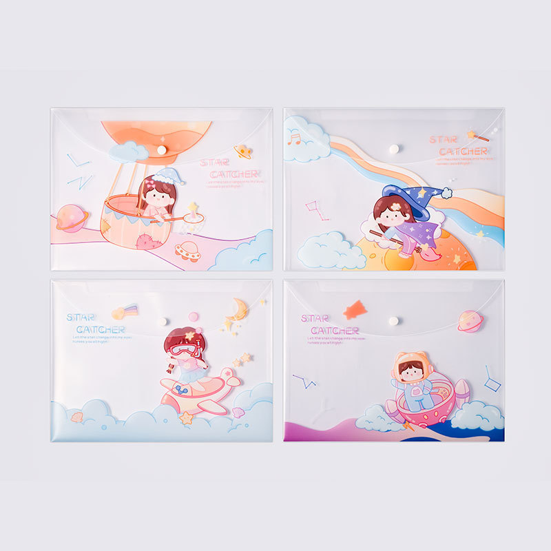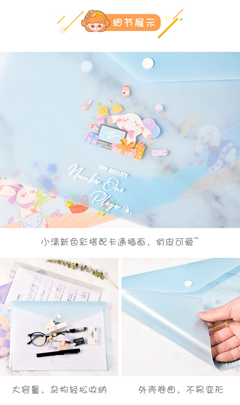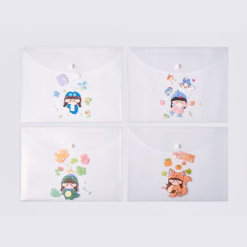 귀여운 만화 소녀 학생 보관 A4 스냅 파일 가방 투명 a4 간단한 폴더 문구 보관 가방스토어 가기