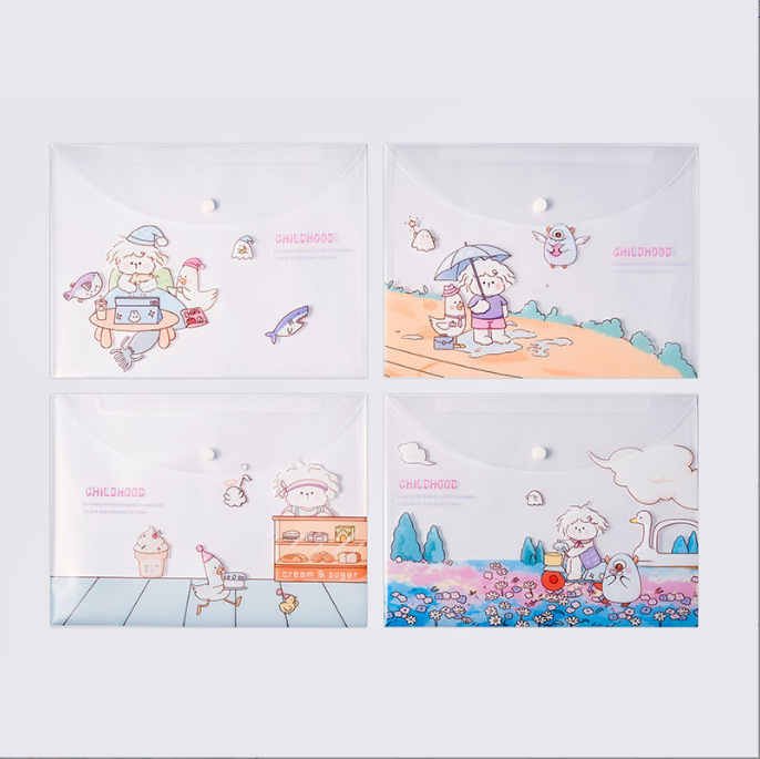 귀여운 만화 소녀 학생 보관 A4 스냅 파일 가방 투명 a4 간단한 폴더 문구 보관 가방