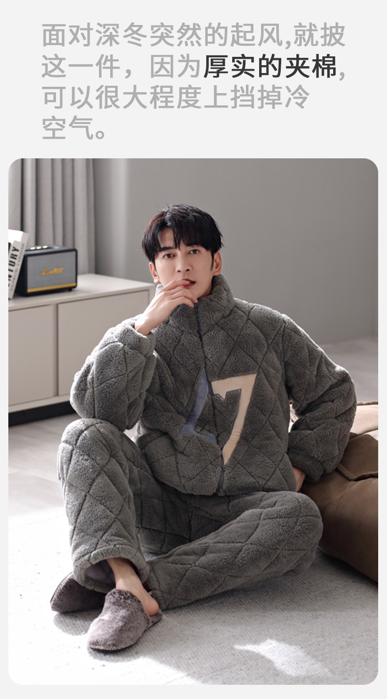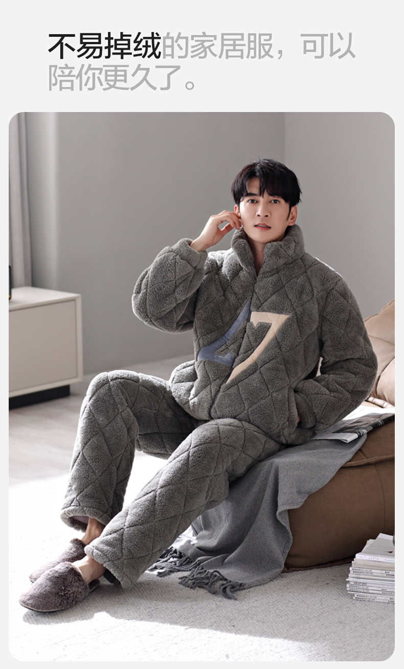 겨울 새로운 남자의 플란넬 3 층 누비 이불 잠옷 따뜻한 플러스 사이즈 두꺼운 긴팔 캐주얼 가정 의류 세트스토어 가기