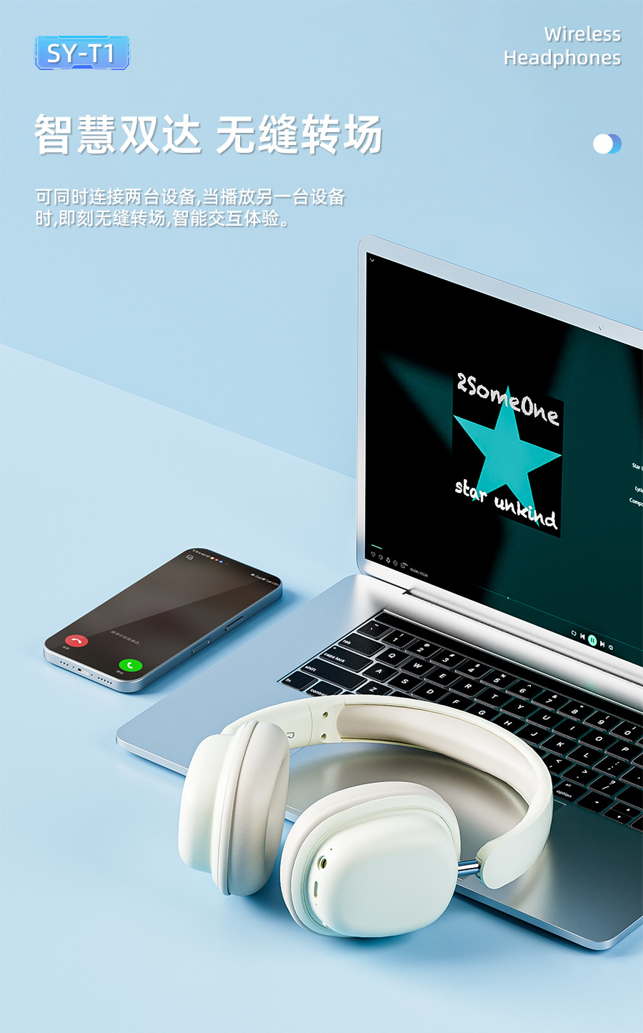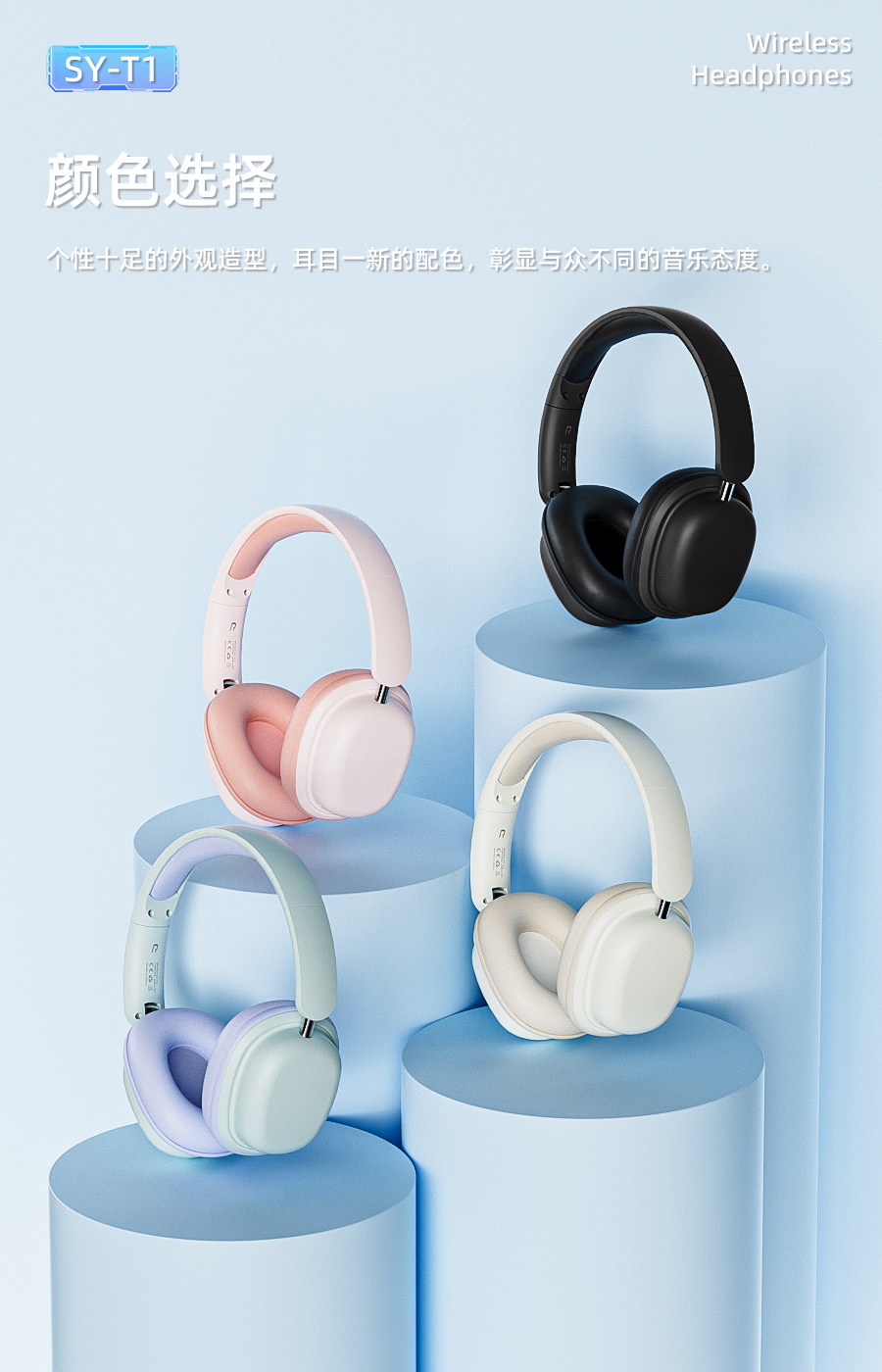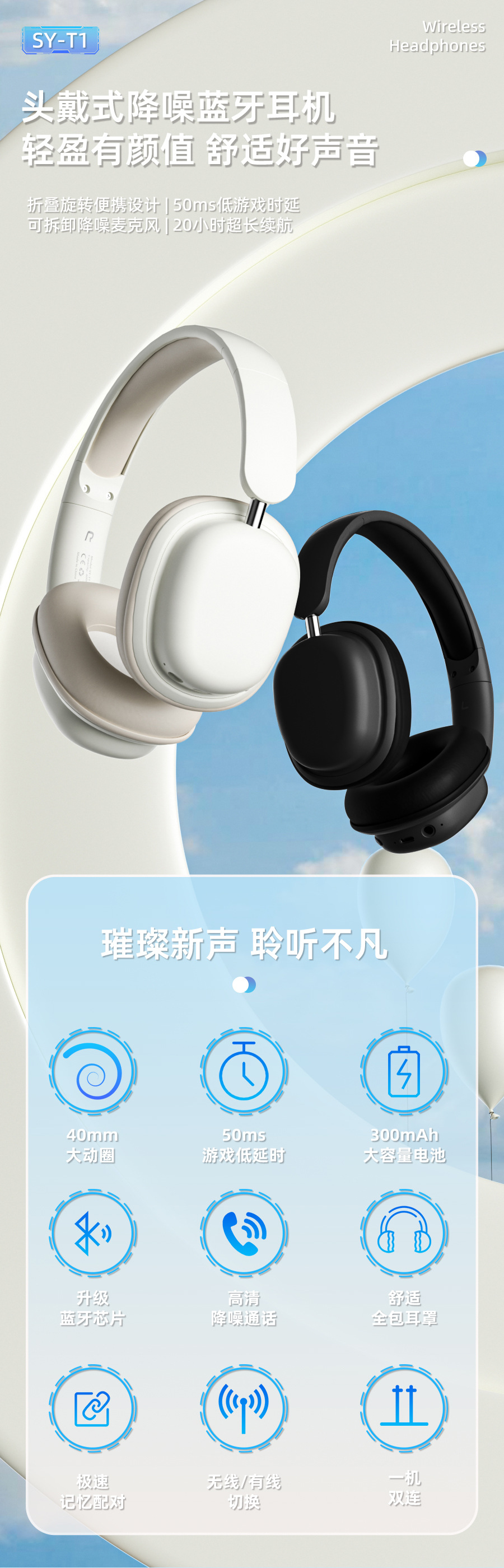 새로운 헤드셋 무선 블루투스 헤드셋 SY-T1 소음 감소 HIFI 낮은 레이턴시 긴 내구성 접이식 국경