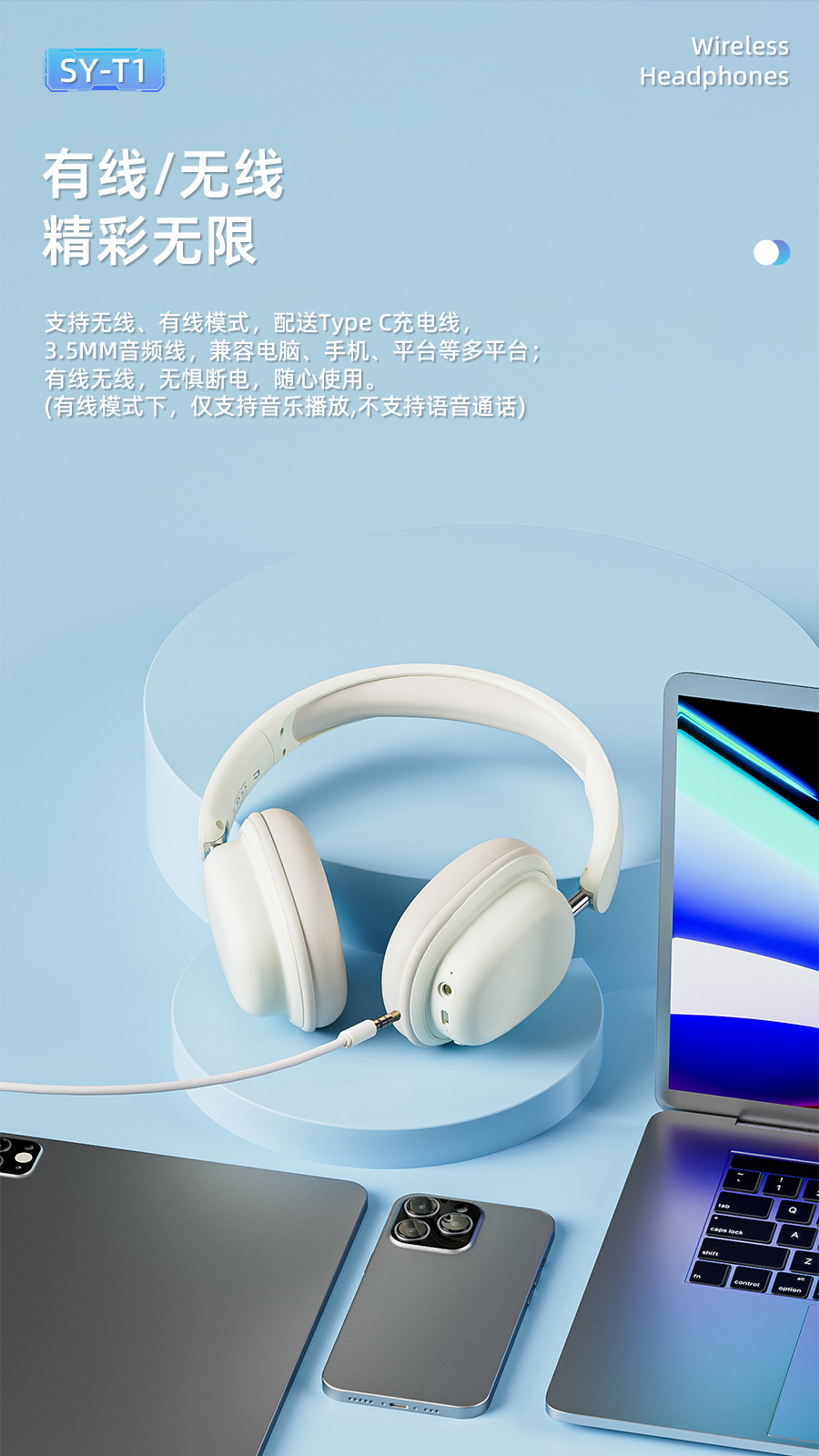 새로운 헤드셋 무선 블루투스 헤드셋 SY-T1 소음 감소 HIFI 낮은 레이턴시 긴 내구성 접이식 국경스토어 가기