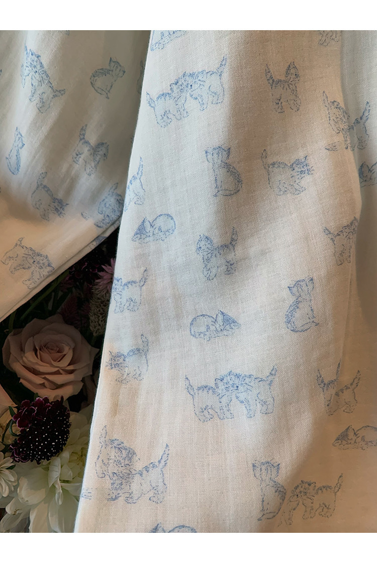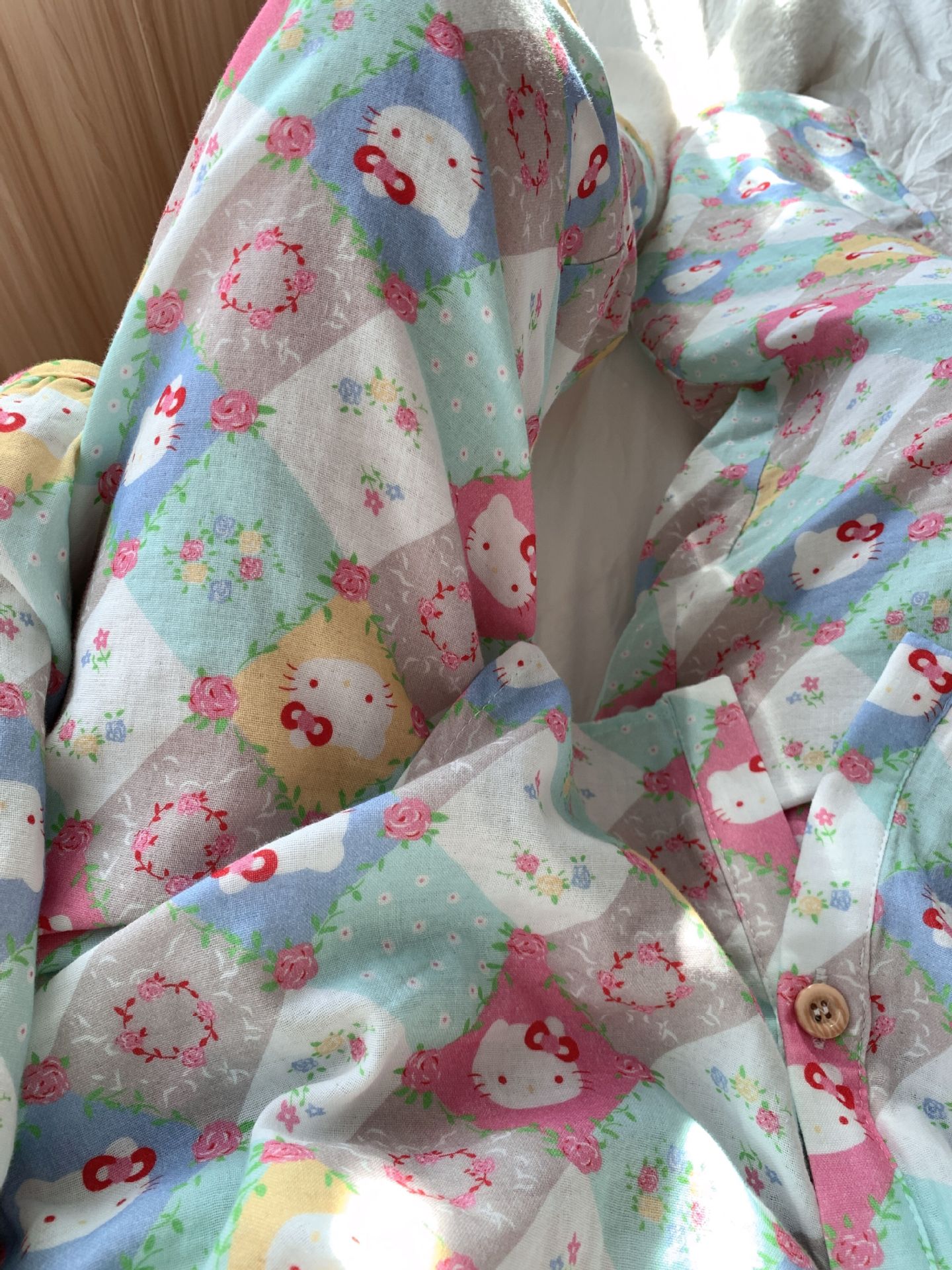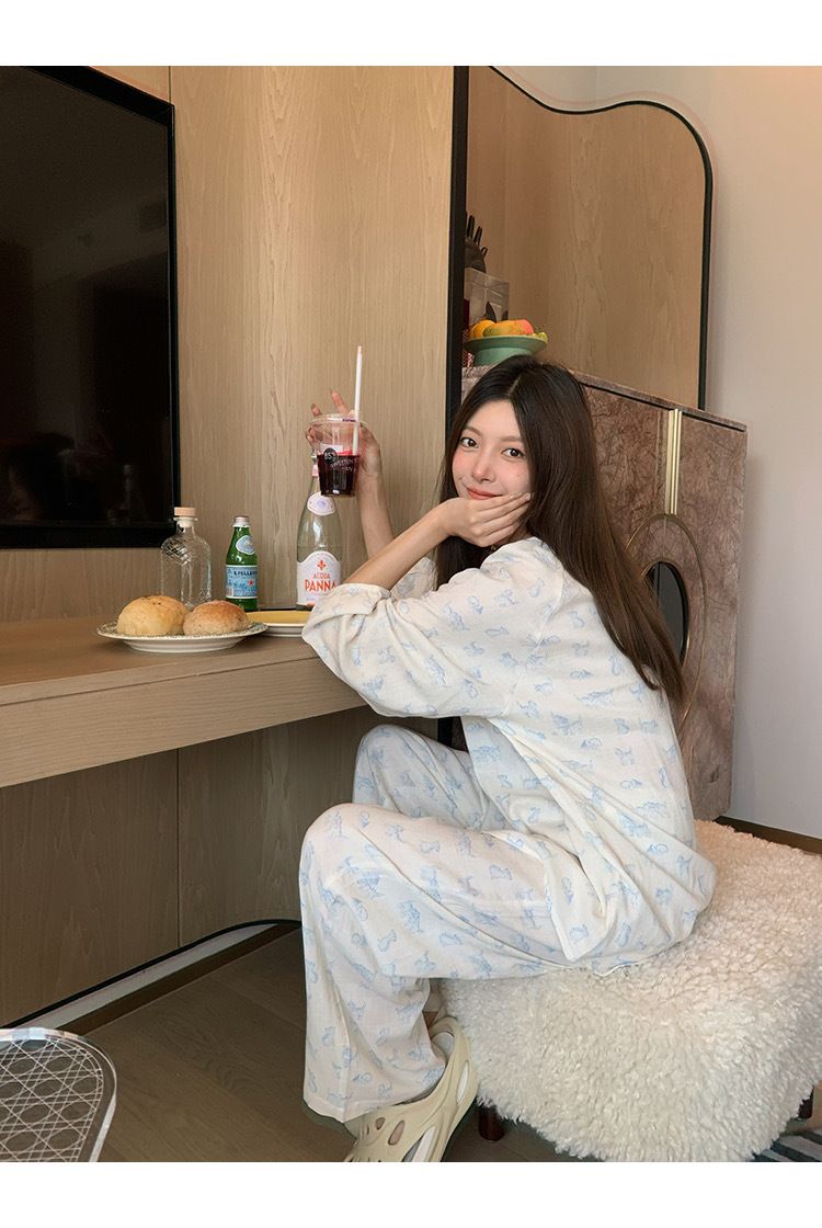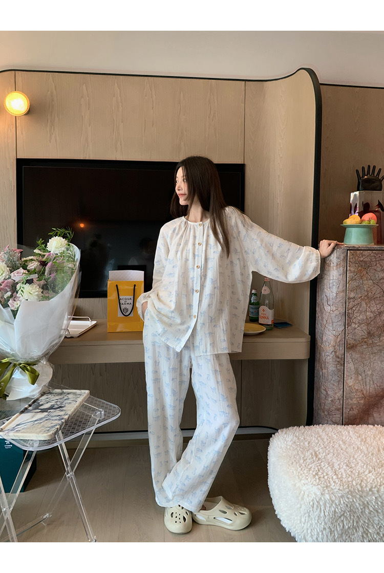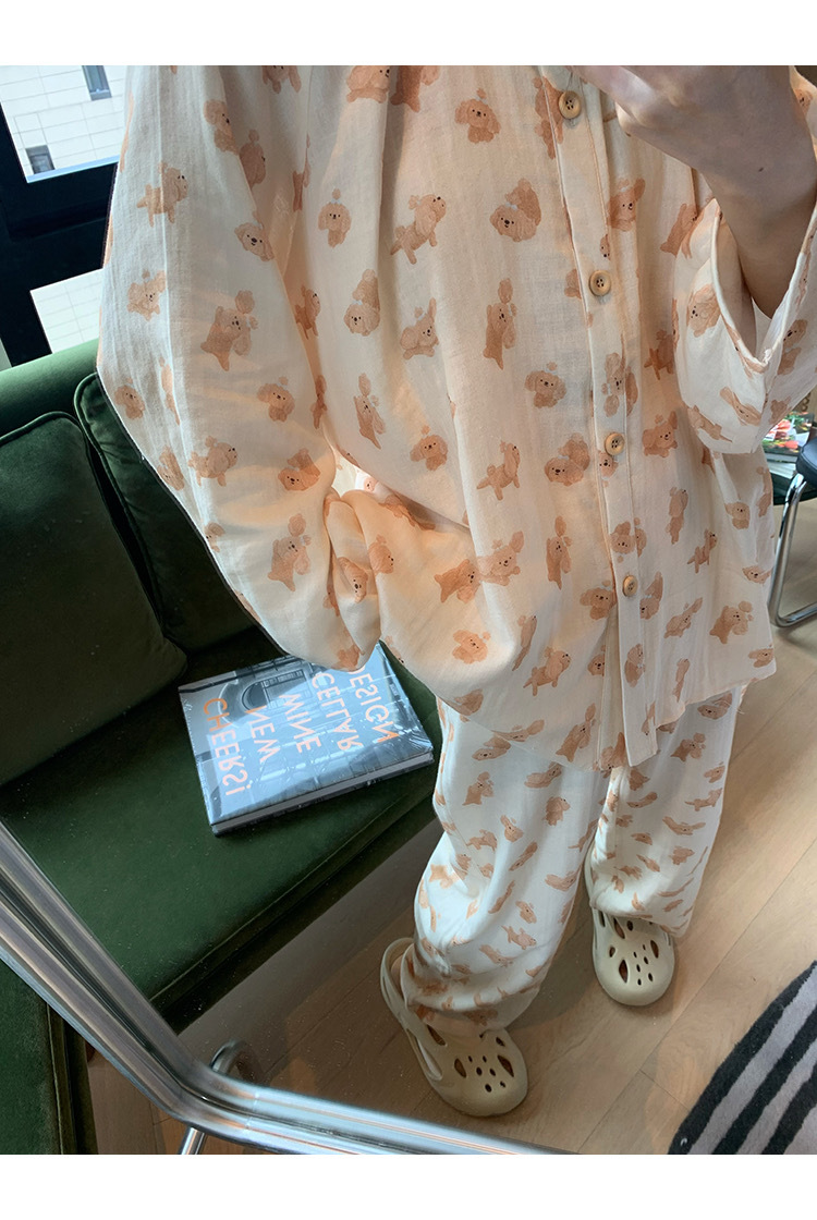 코튼 더블 거즈 스케치 고양이 느슨한 한국식 홈 의류 잠옷 세트