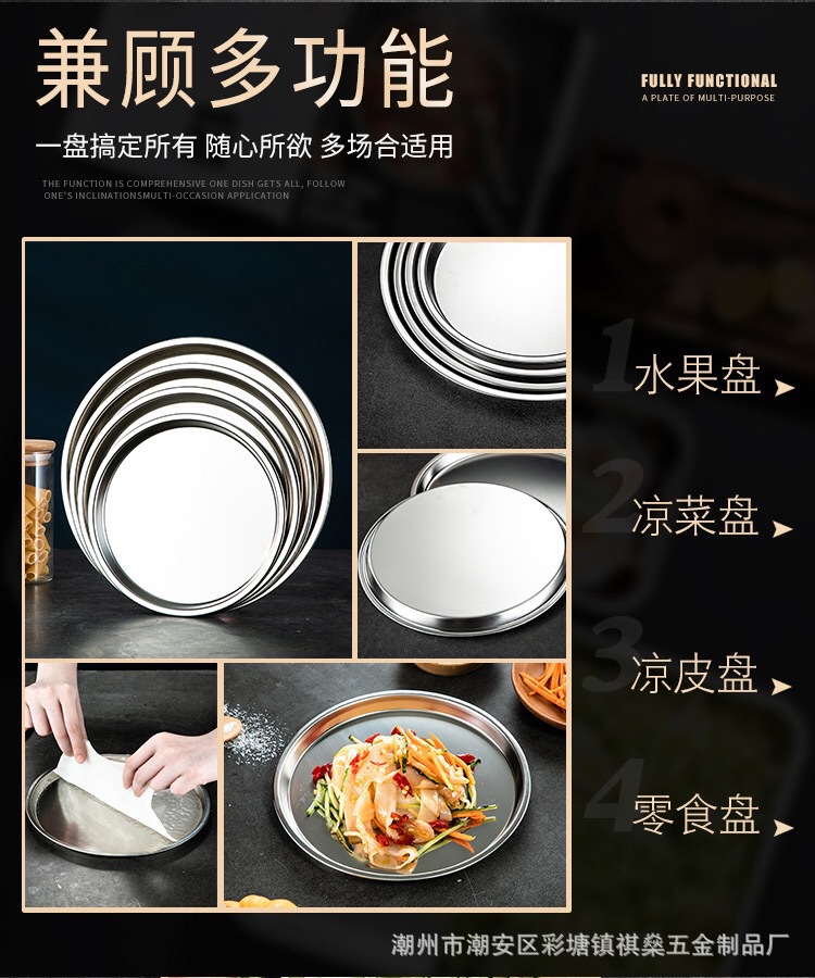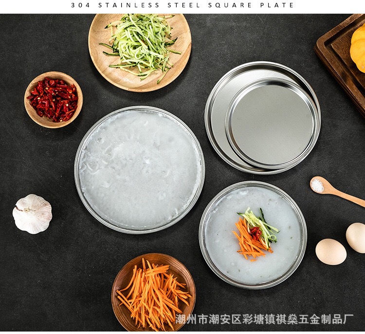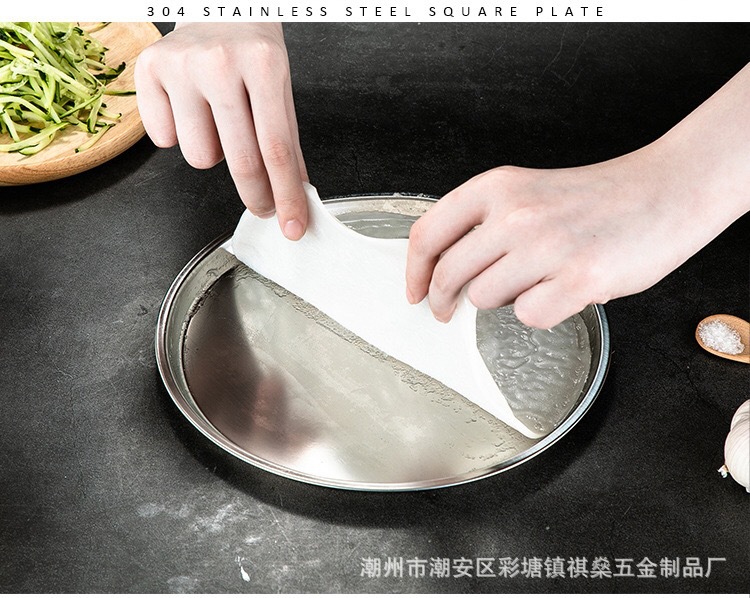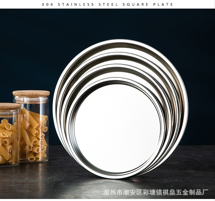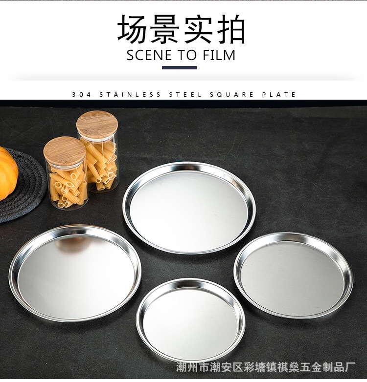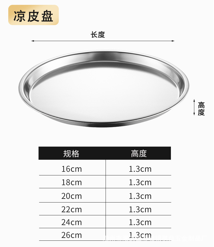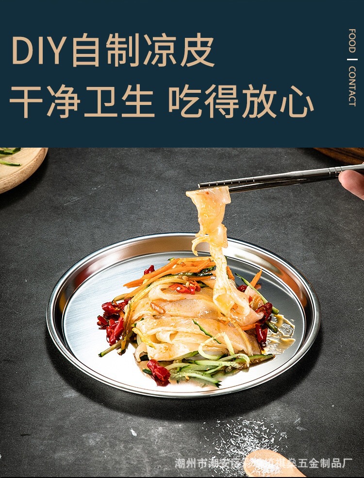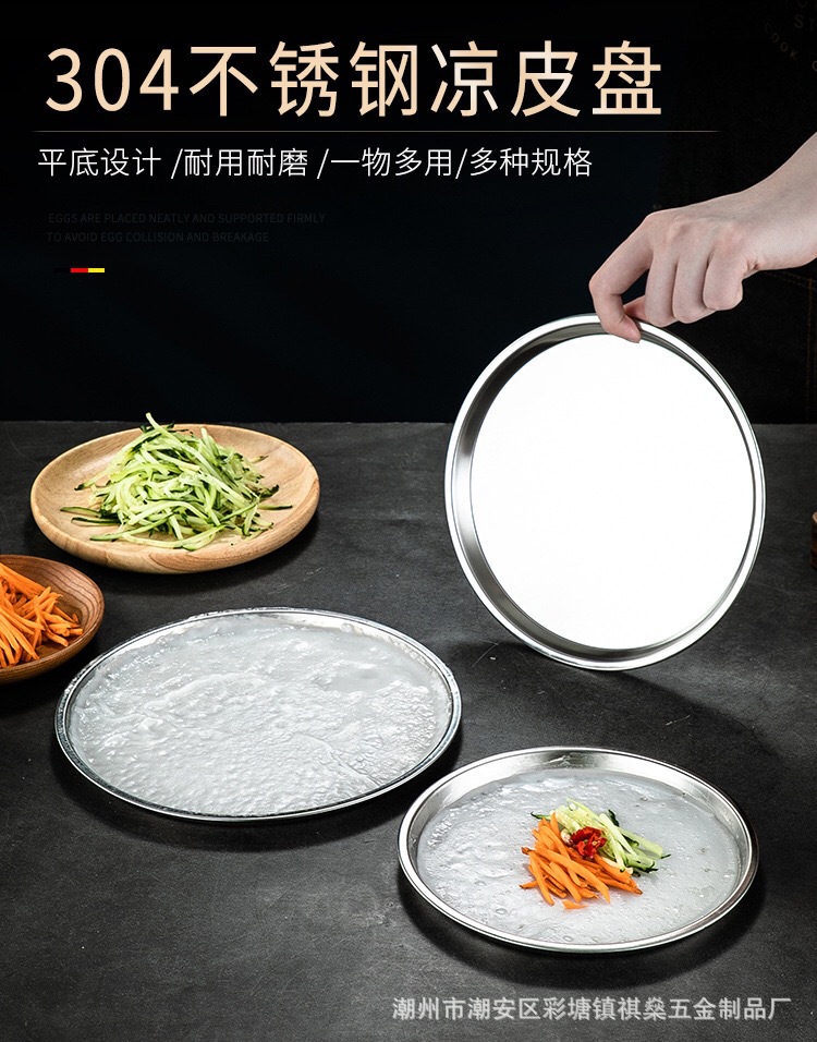 304 스테인레스 쌀 롤 접시 원형 디스크 304 식품 등급 쌀 롤 찜 접시 원형 평면 바닥 찜 접시 시원한 가죽 접시