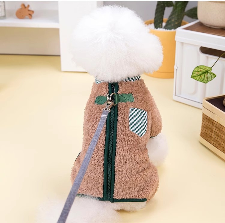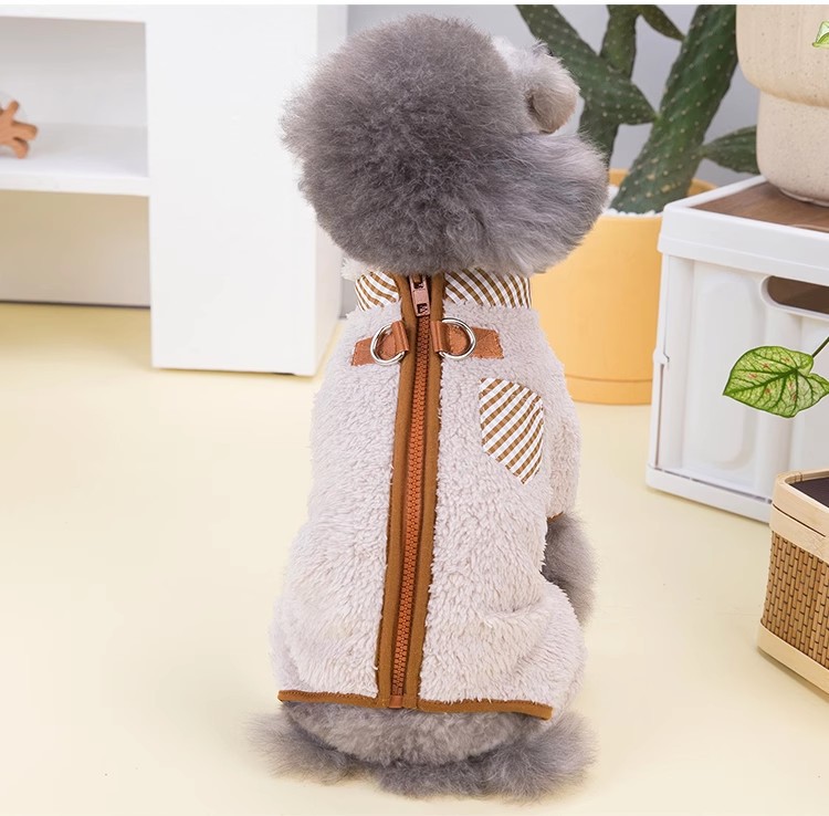 개 옷 가을 의류 가을과 겨울 네 다리 의류 따뜻한 벨벳 백 지퍼 애완 동물 고양이 작은 개 테디 베어