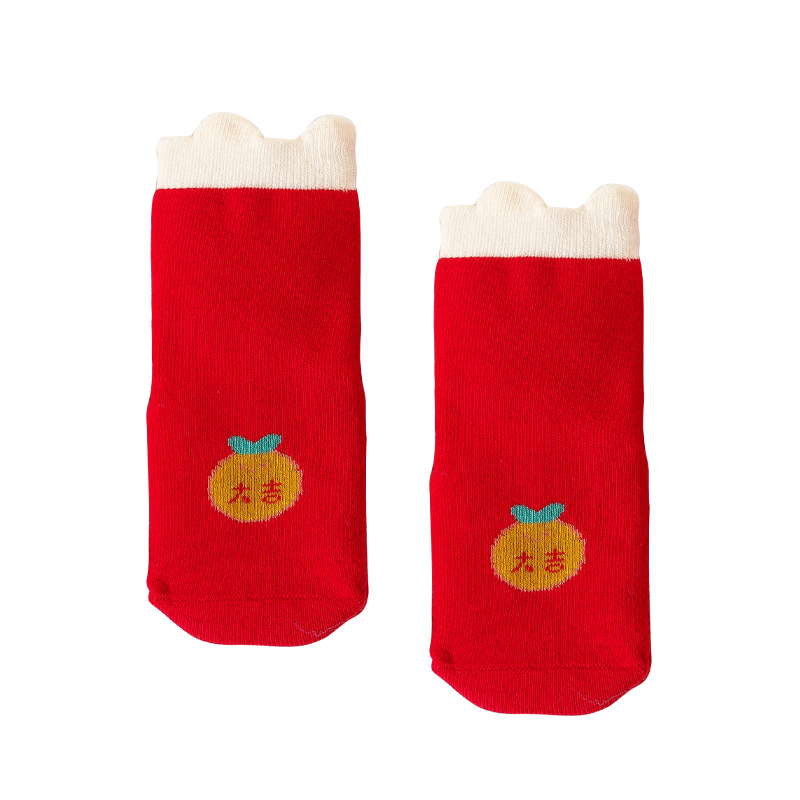 아기 바닥 양말 2024 겨울 새 두꺼운 테리 100 일 늙은 소년과 소녀 붉은 새해 양말