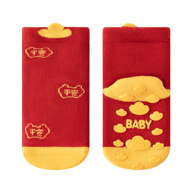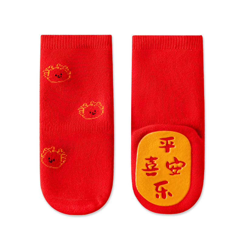 아기 바닥 양말 2024 겨울 새 두꺼운 테리 100 일 늙은 소년과 소녀 붉은 새해 양말스토어 가기