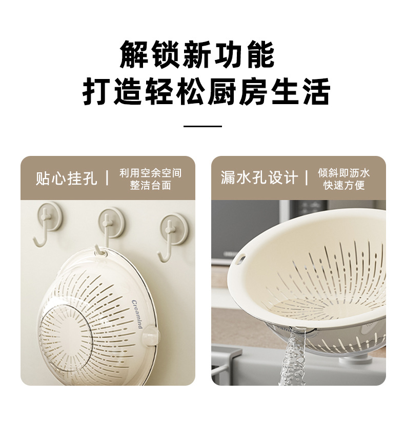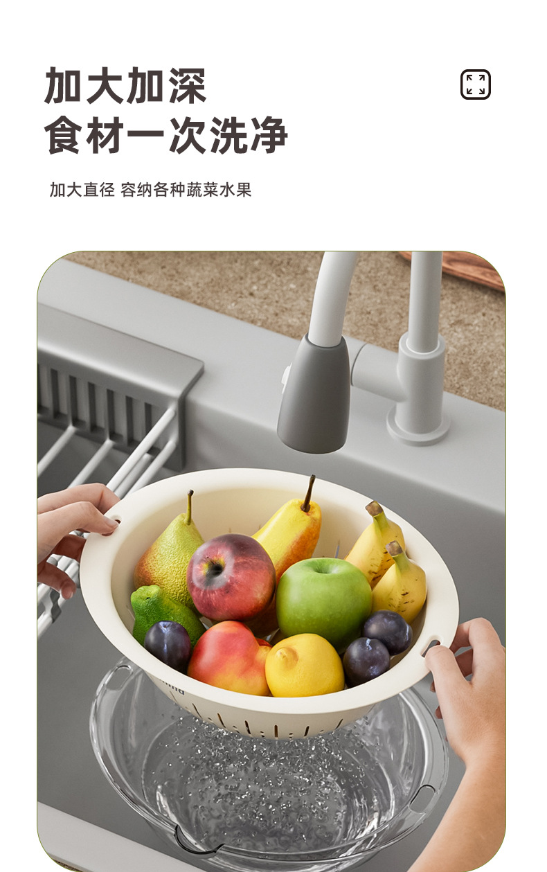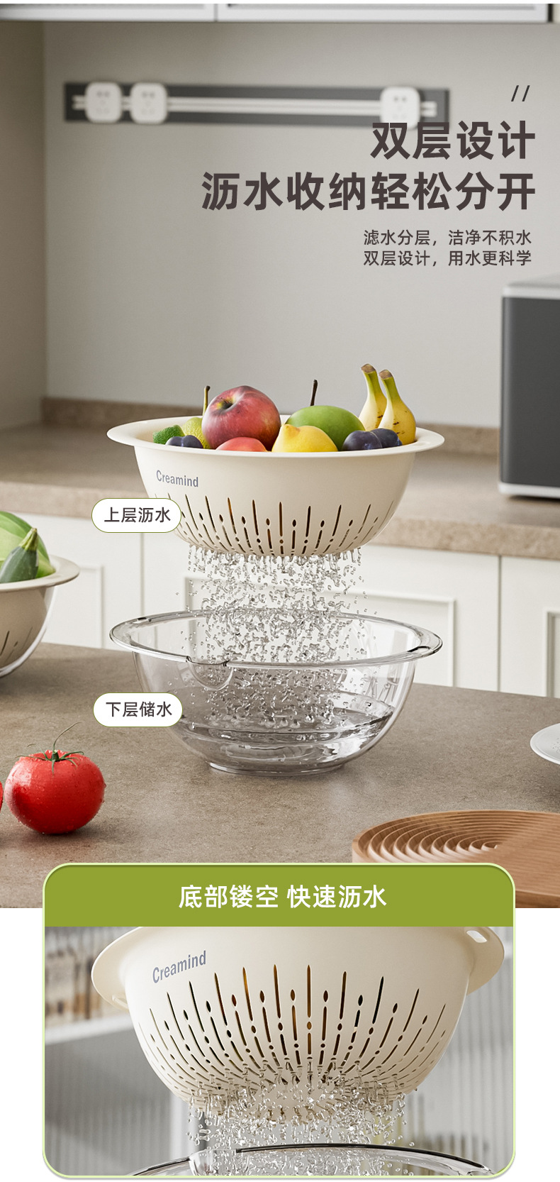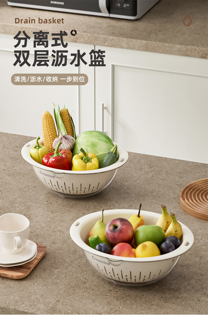 야채 세척 바구니 교수형 구멍과 인스 타 그램 스타일 주방 배수 바구니 두꺼운 야채 바구니 더블 레이어 다기능 거실 과일 저장 바구니
