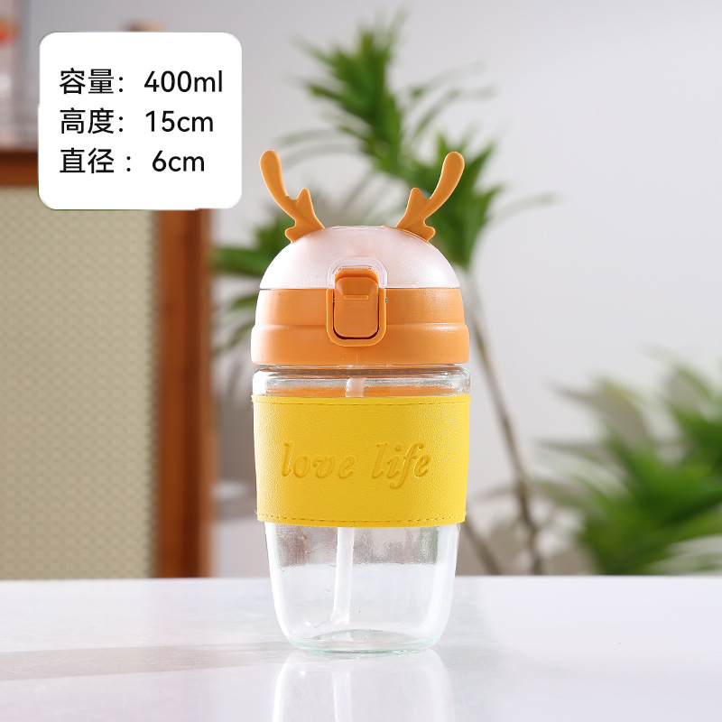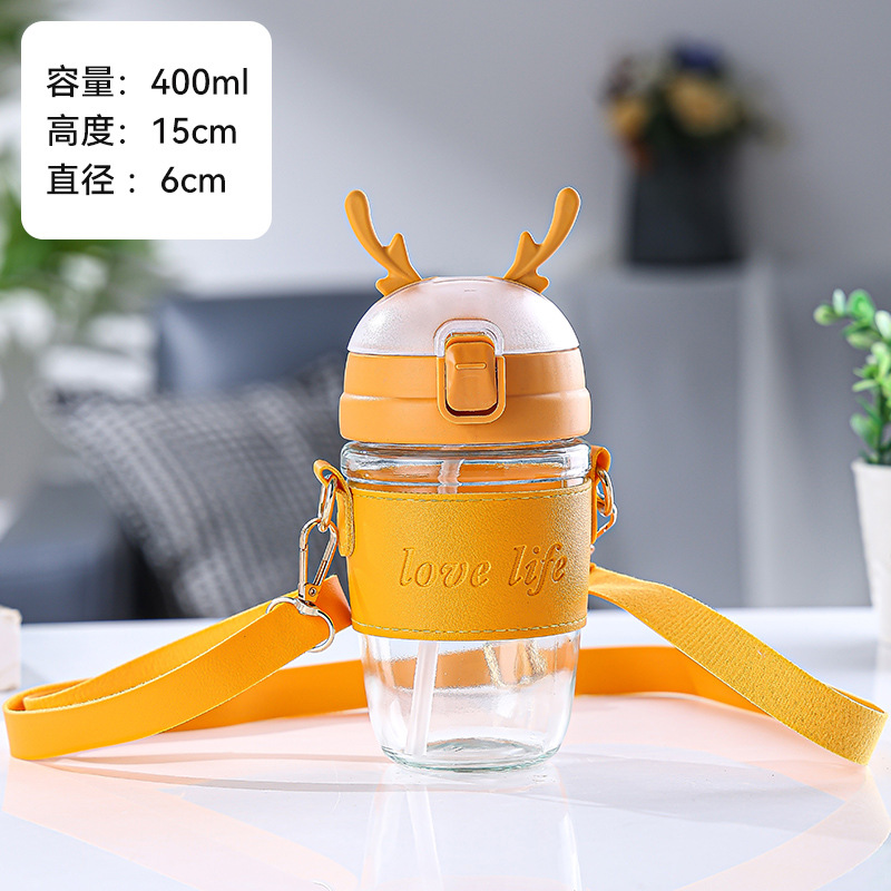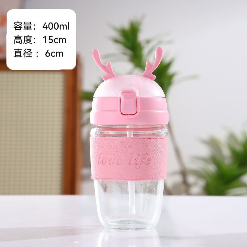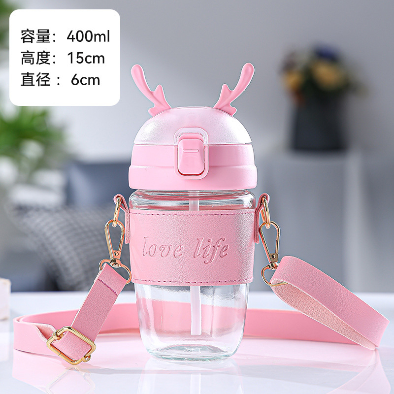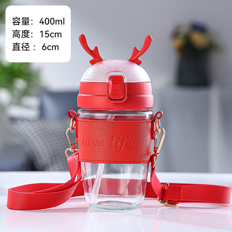크리 에이 티브 크리스마스 선물 컵 엘크 유리 물 컵 휴대용 스트랩 흡입 튜브 컵 두꺼운 학생 단열 컵