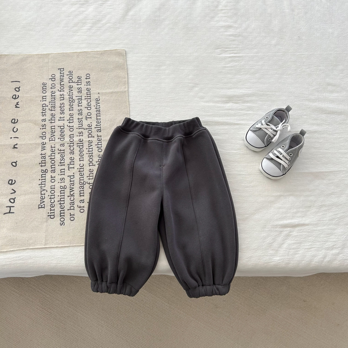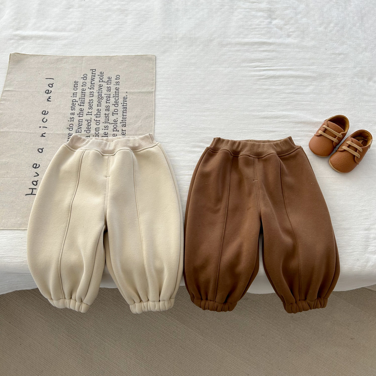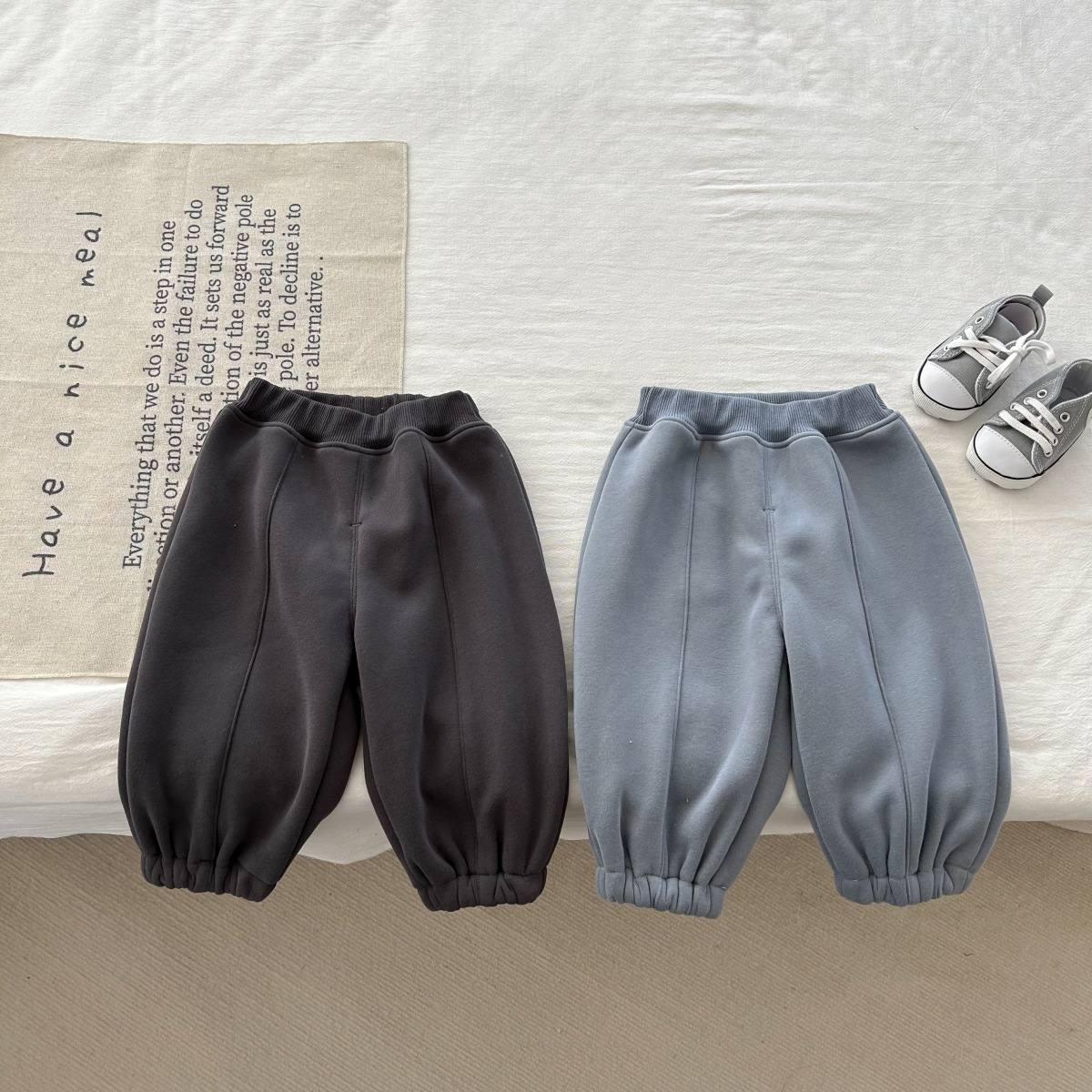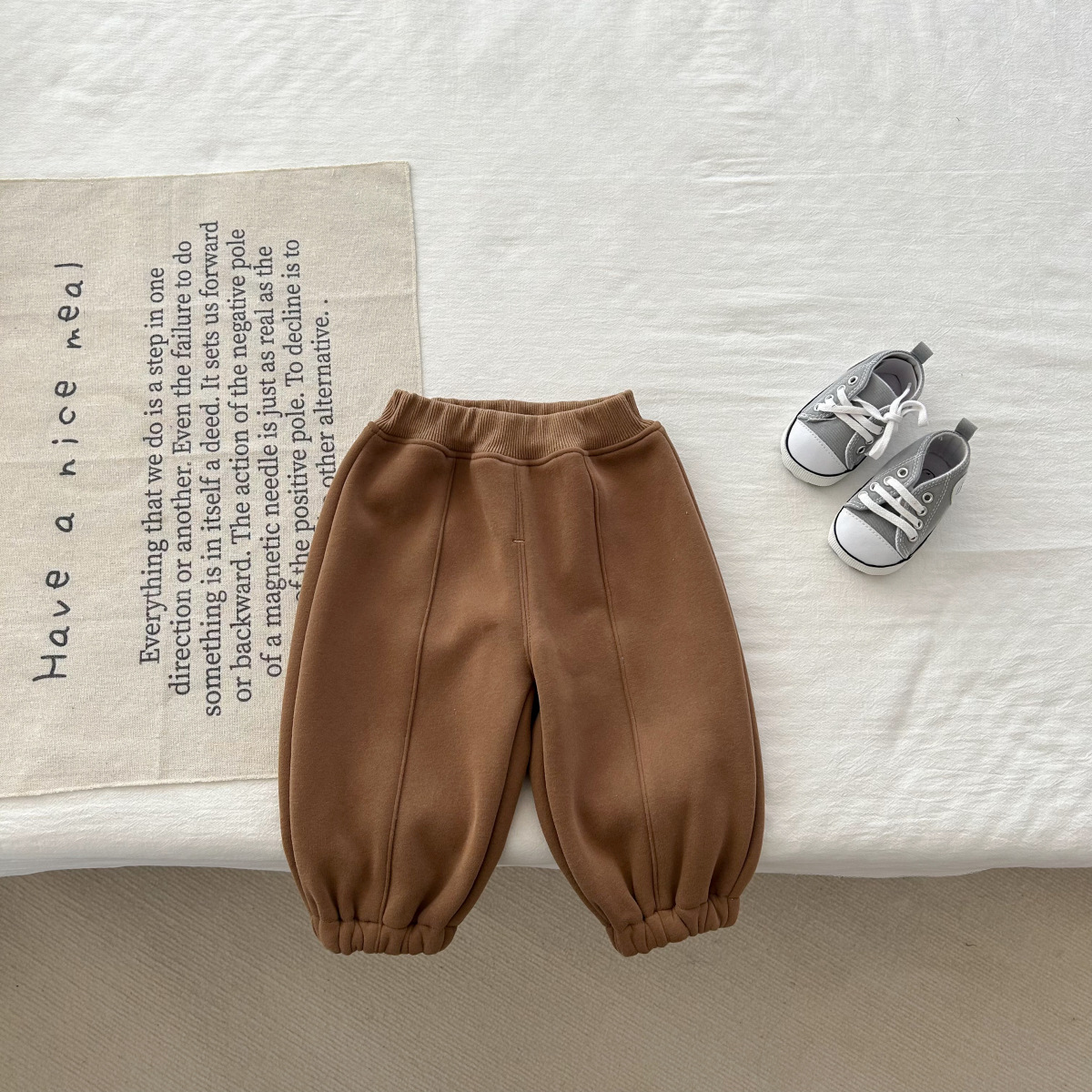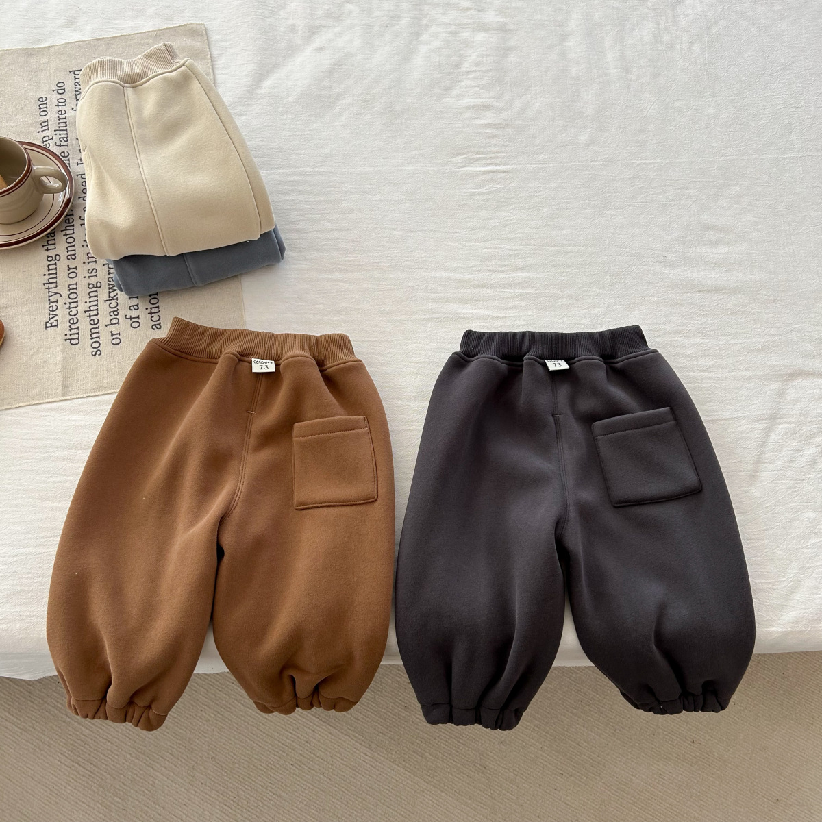 어린이 한국식 바지 2023 가을과 겨울 아기 소년 소녀 단색 스포츠 바지 유아 기모 캐주얼 모든 경기 바지스토어 가기