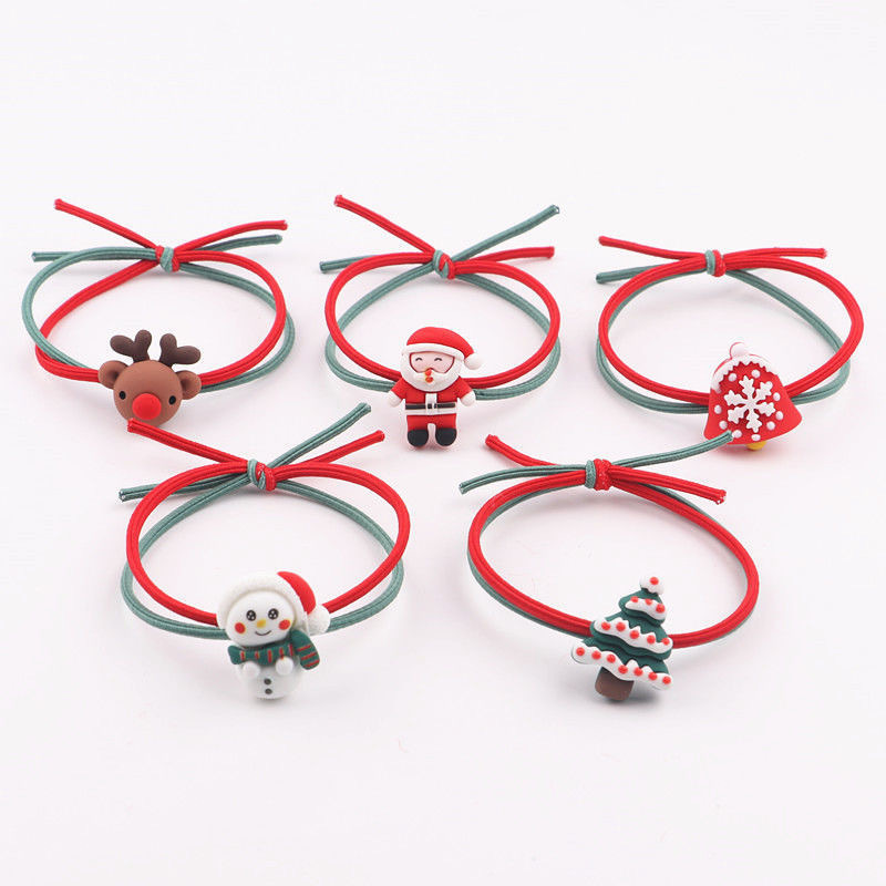 크리 에이 티브 크리스마스 요소 헤어 로프 귀여운 머리 반지 소녀 만화 고무 밴드 헤드 로프 유치원 크리스마스 선물