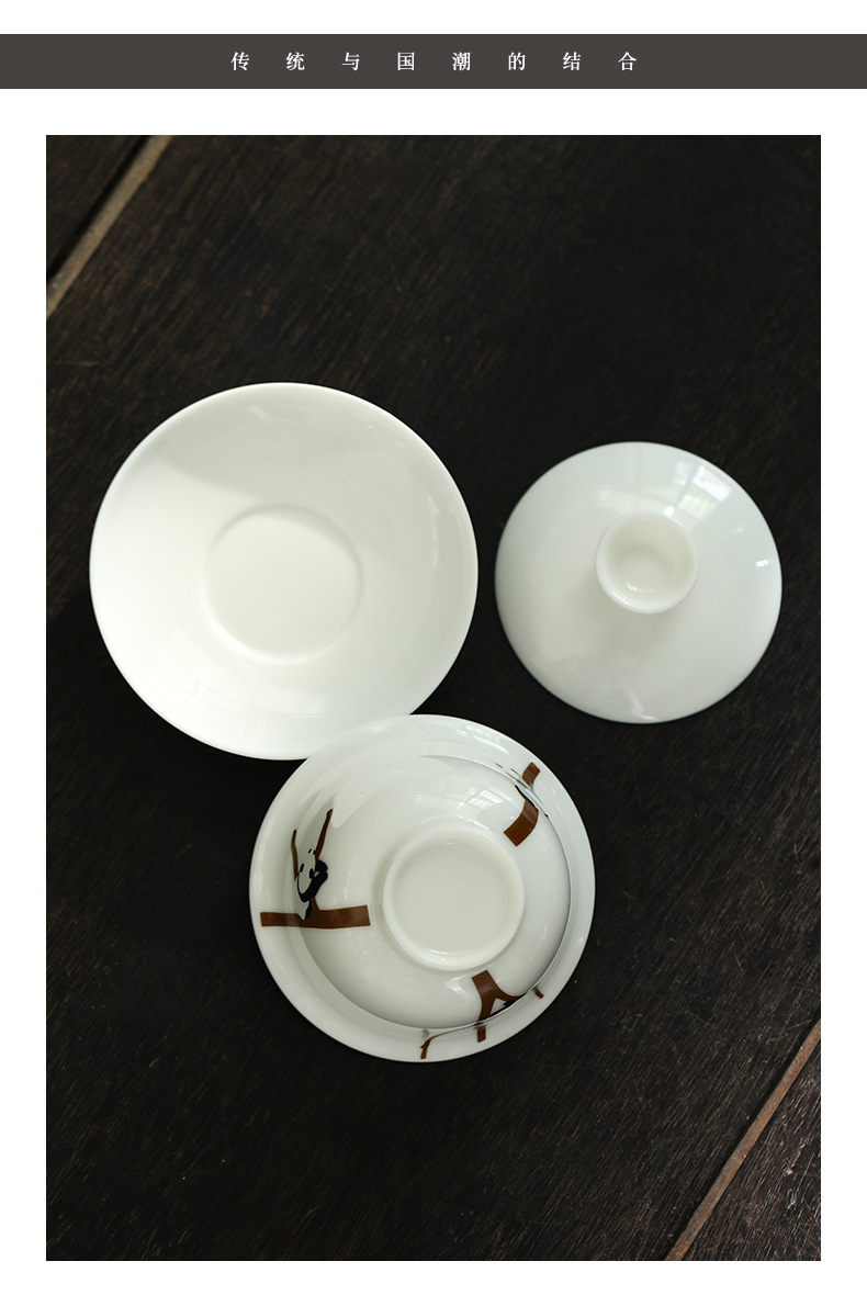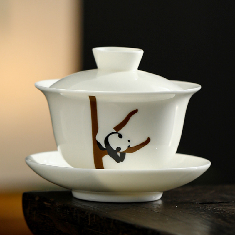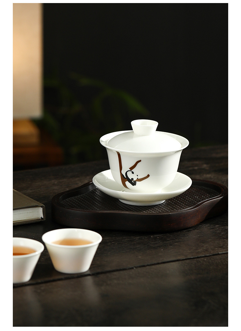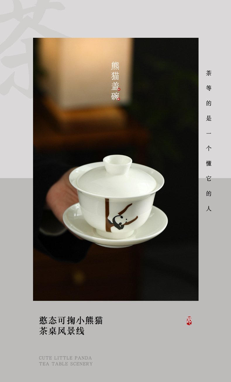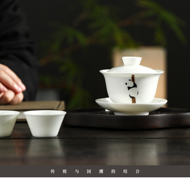 원래 디자인 팬더 커버 그릇 Dehua 화이트 도자기 옥 도자기 뜨거운 차 세트 세트 쿵푸 그릇 커버 세라믹과 세 모자스토어 가기