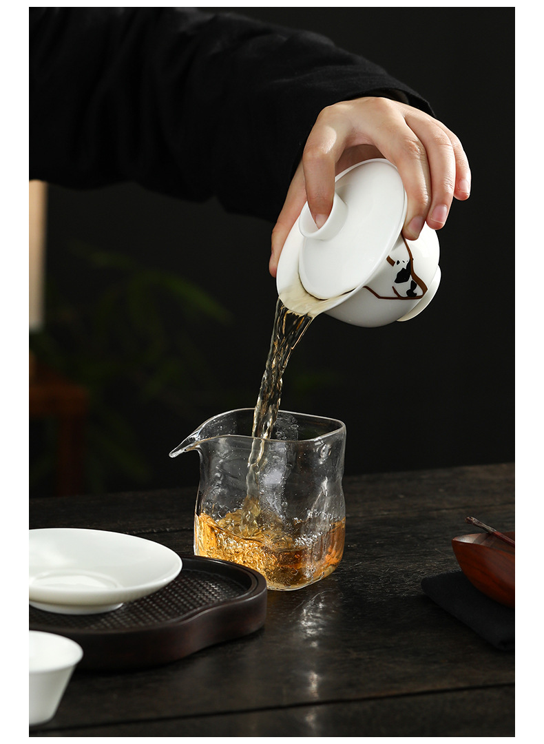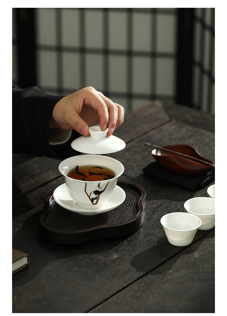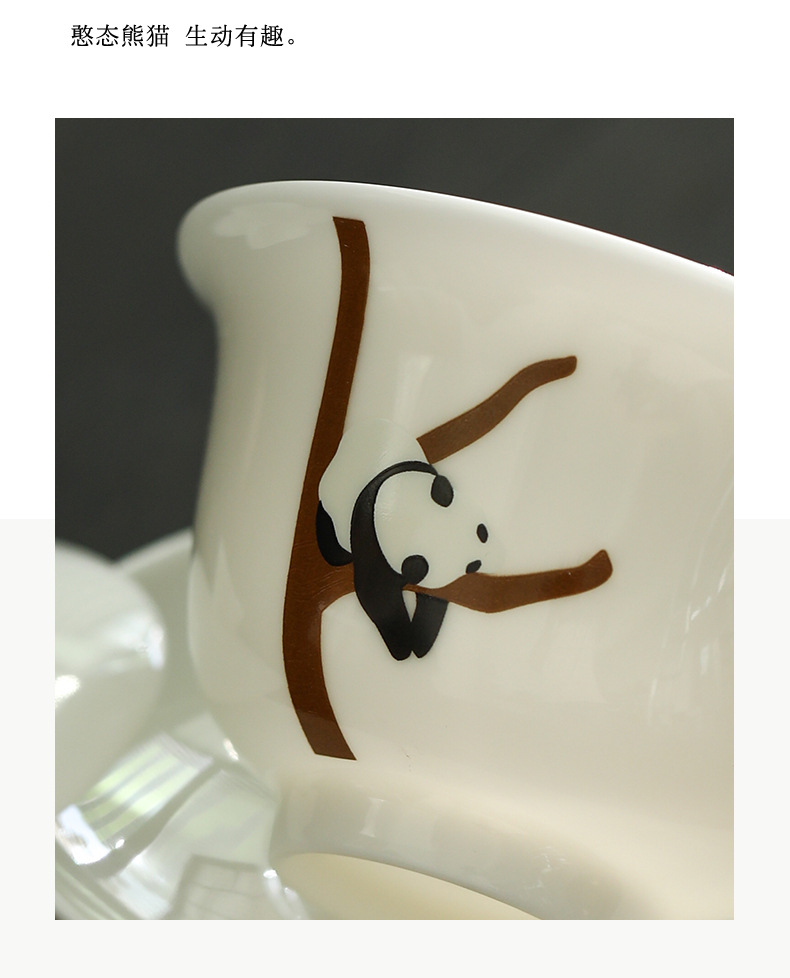 원래 디자인 팬더 커버 그릇 Dehua 화이트 도자기 옥 도자기 뜨거운 차 세트 세트 쿵푸 그릇 커버 세라믹과 세 모자