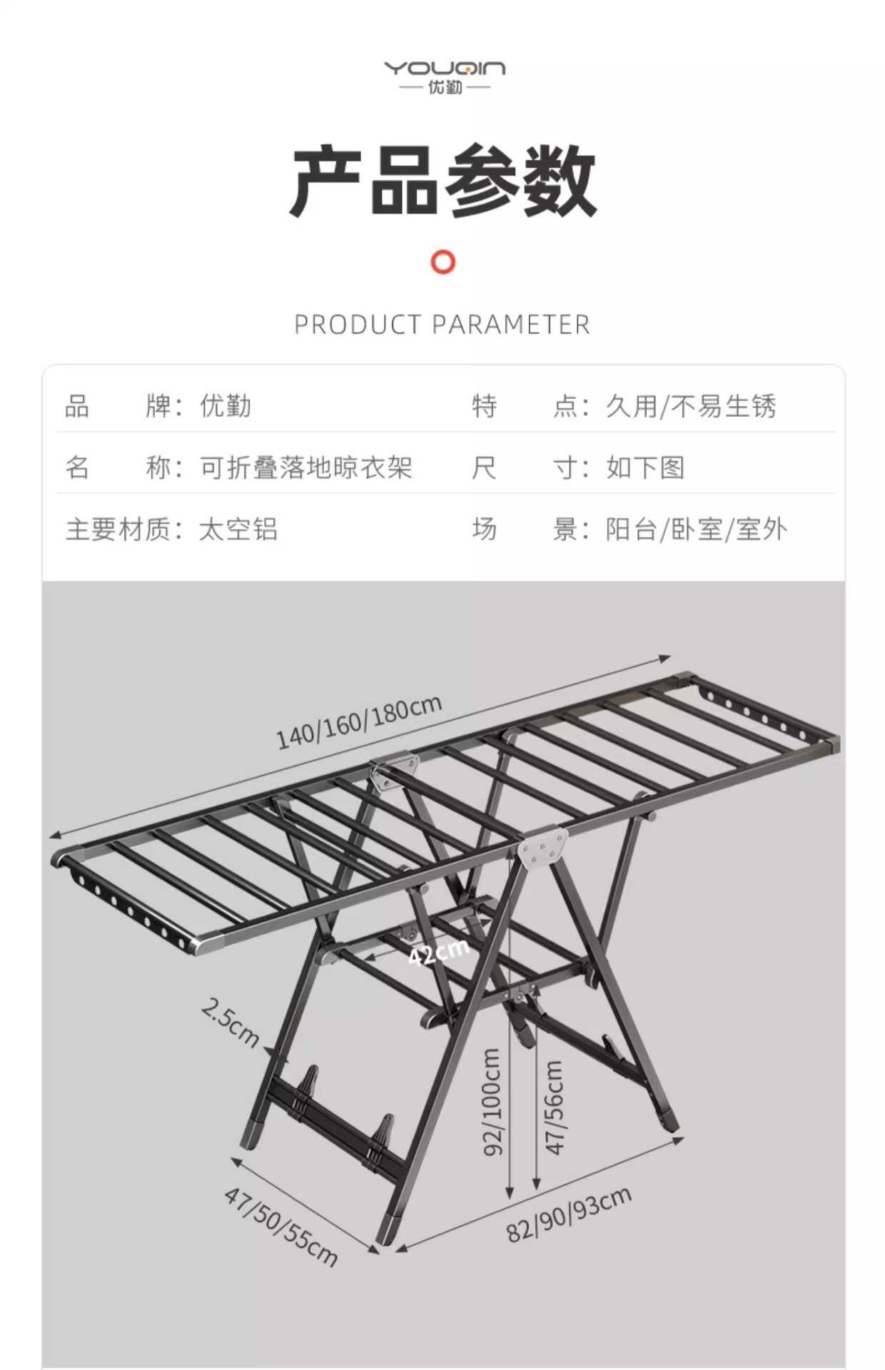 접이식 옷 랙 발코니 가정용 바닥형 알루미늄 합금 샌들로드 침실 야외 건조 이불 유물 브래킷