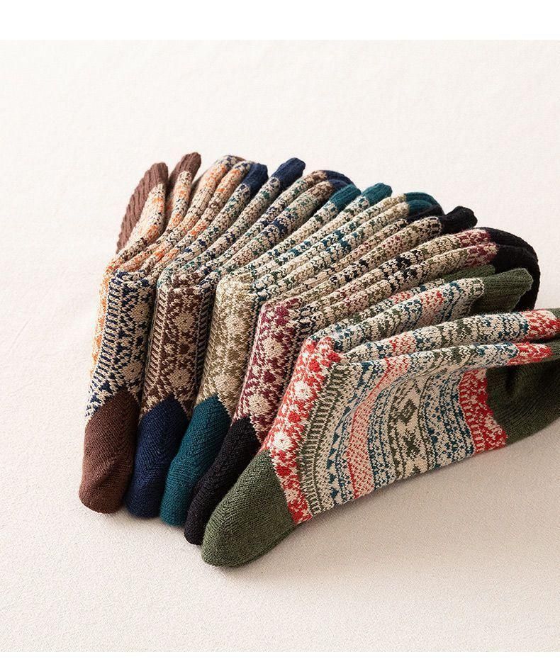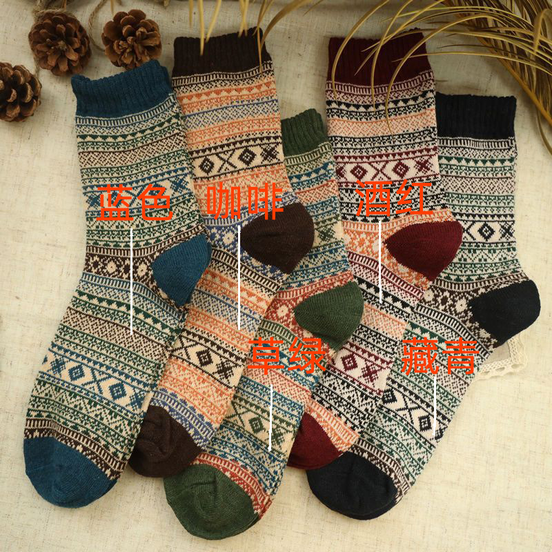 양말 여성 가을과 겨울 에스닉 스타일 중간 길이 양말 일본식 빈티지 하라주쿠 스타일 여성 양말 모조 이중 바늘 두꺼운 여성 양말스토어 가기