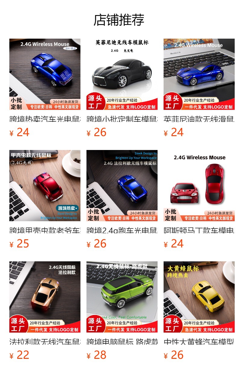 跨境定制滑鼠跑车摆件兰博基尼款2.4G电脑鼠标光电鼠汽车无线鼠标