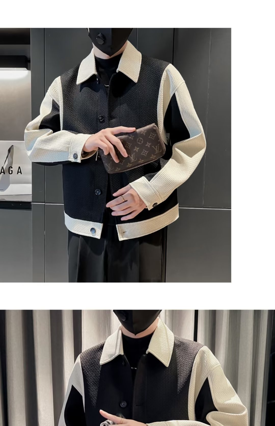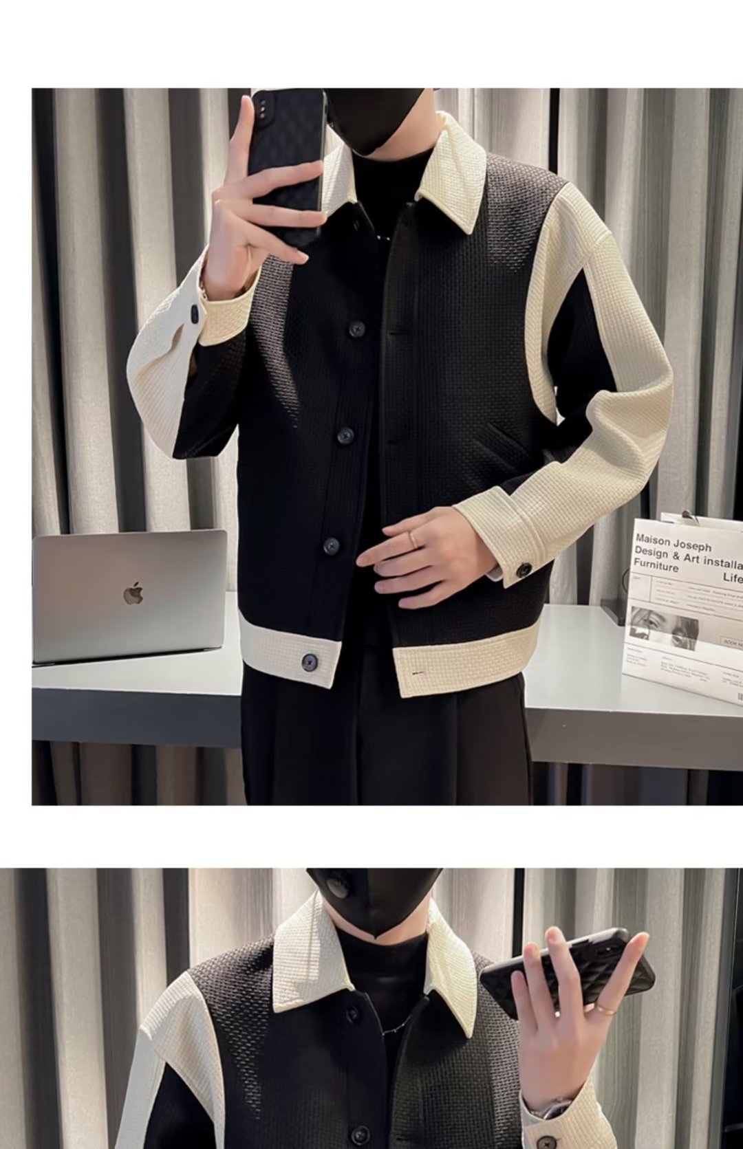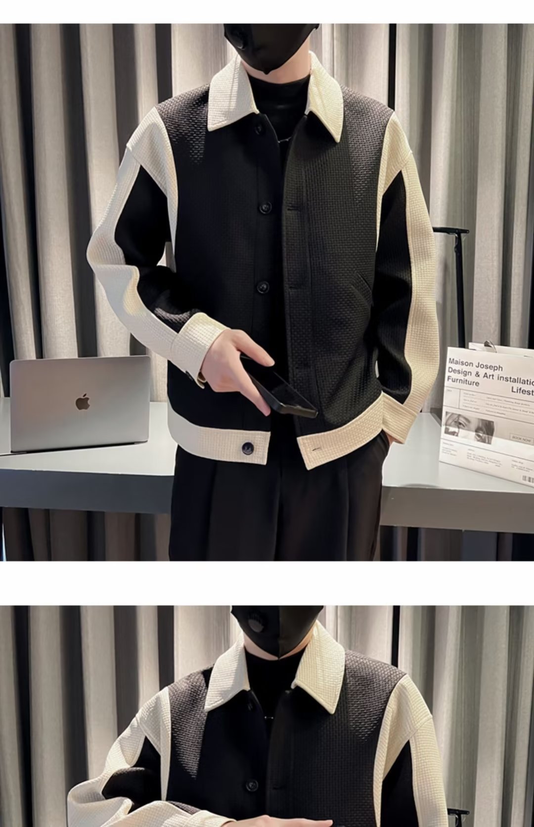 남자의 봄과 가을 패션 브랜드 하이 엔드 패션 캐주얼 패션 컬러 매칭 라펠 에비에이터 재킷 탑스토어 가기
