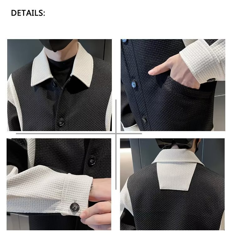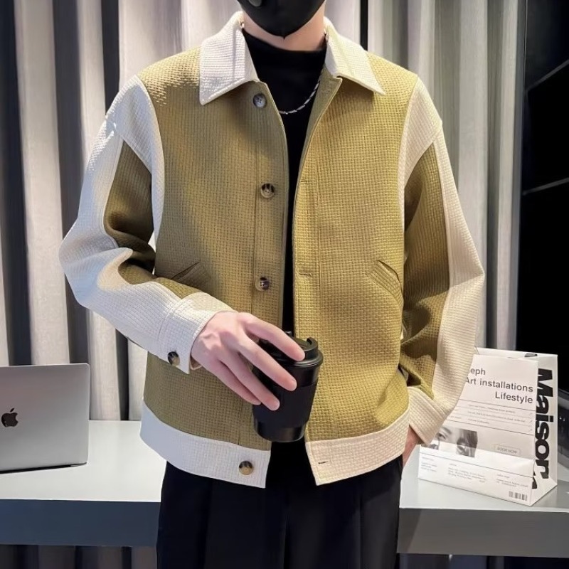 남자의 봄과 가을 패션 브랜드 하이 엔드 패션 캐주얼 패션 컬러 매칭 라펠 에비에이터 재킷 탑