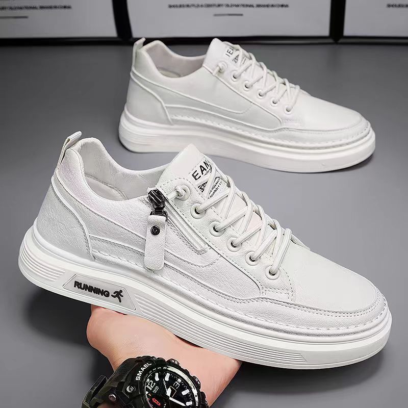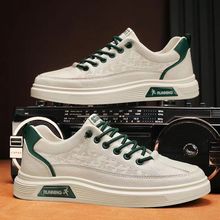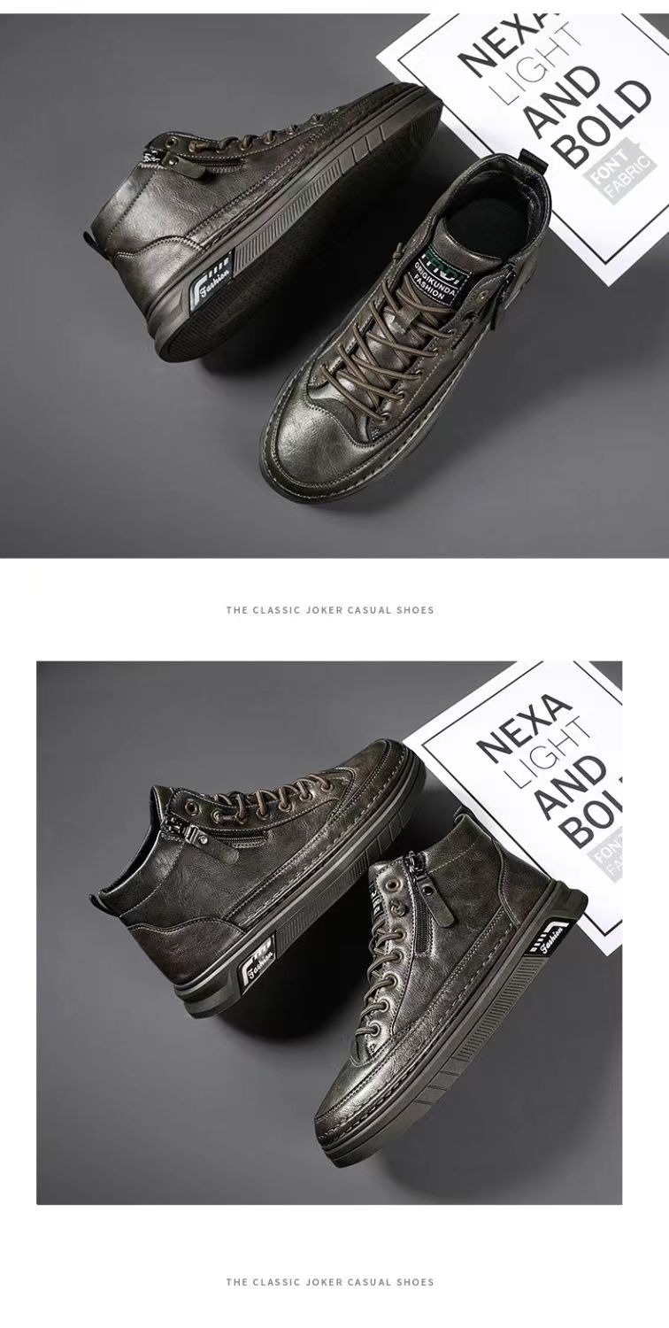 가을 남성 신발 2025 새로운 영국 스타일 하이 탑 캐주얼 가죽 신발 다목적 스포츠 스니커즈 세련된 흰색 신발 증가