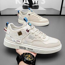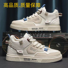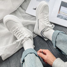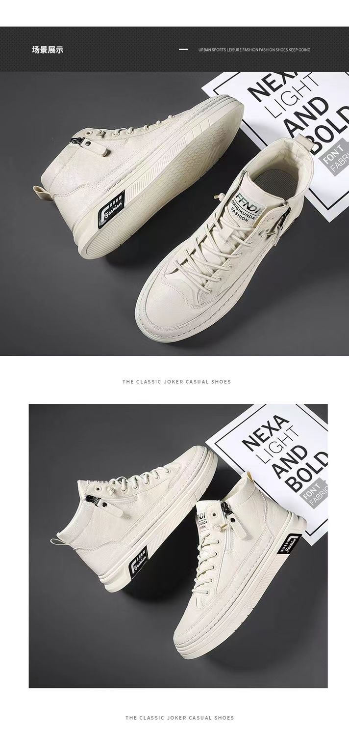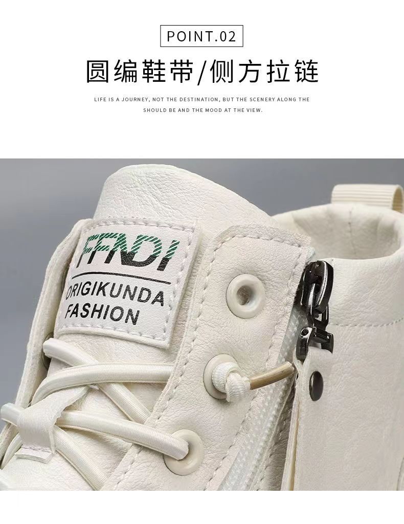 가을 남성 신발 2025 새로운 영국 스타일 하이 탑 캐주얼 가죽 신발 다목적 스포츠 스니커즈 세련된 흰색 신발 증가스토어 가기