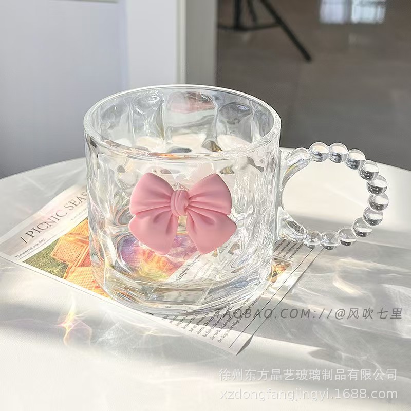 인터넷 유명인 손잡이 유리 머그 가정용 내열 간단한 활 투명 물 컵 꽃 차 컵 커피 컵
