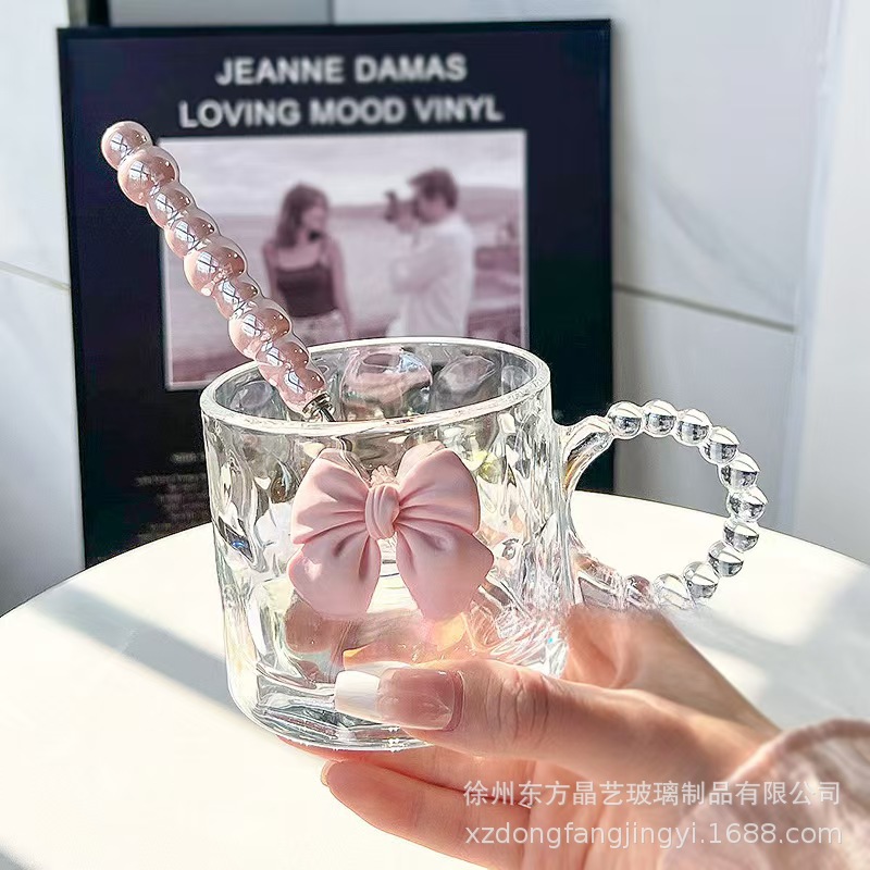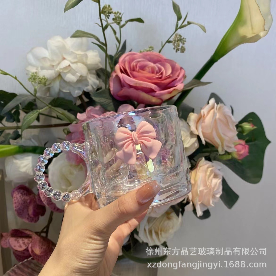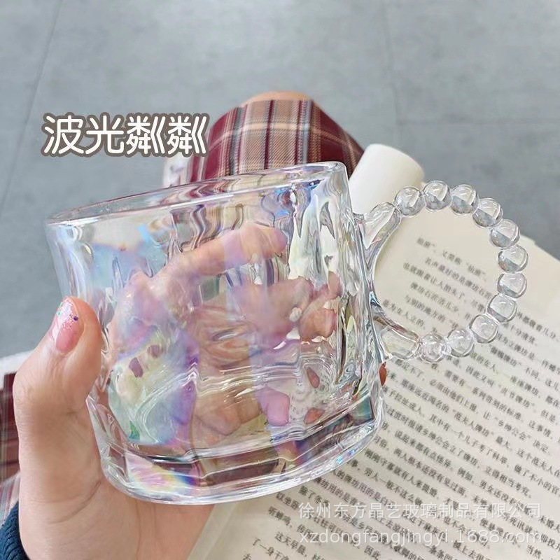 인터넷 유명인 손잡이 유리 머그 가정용 내열 간단한 활 투명 물 컵 꽃 차 컵 커피 컵스토어 가기