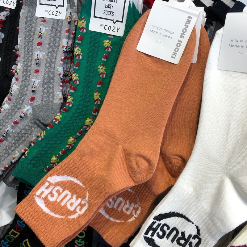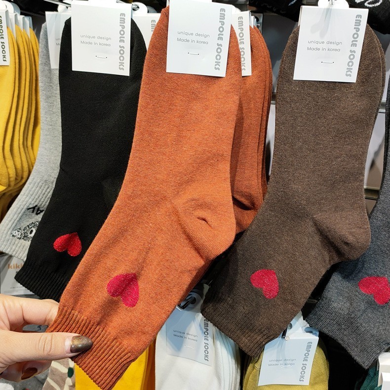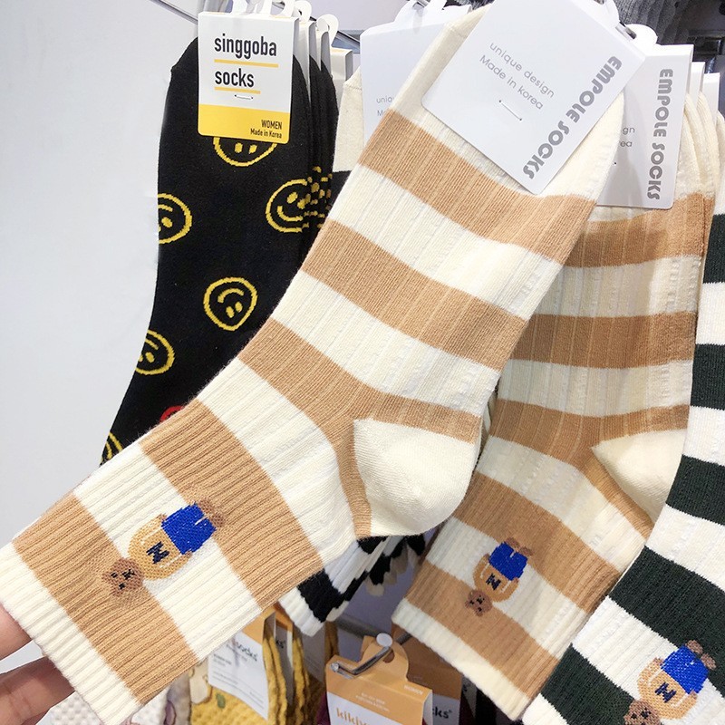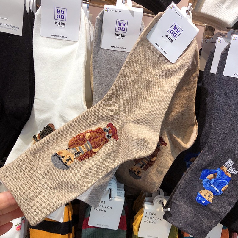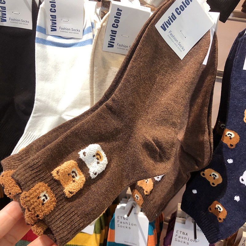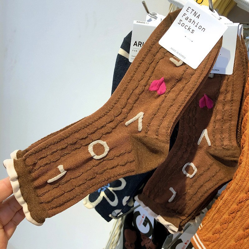 Maillard 컬러 다크 브라운 스타킹 한국 양말 동쪽 게이트 지구 따뜻한 색상 곰 러브 레터 여성의 중간 양말스토어 가기