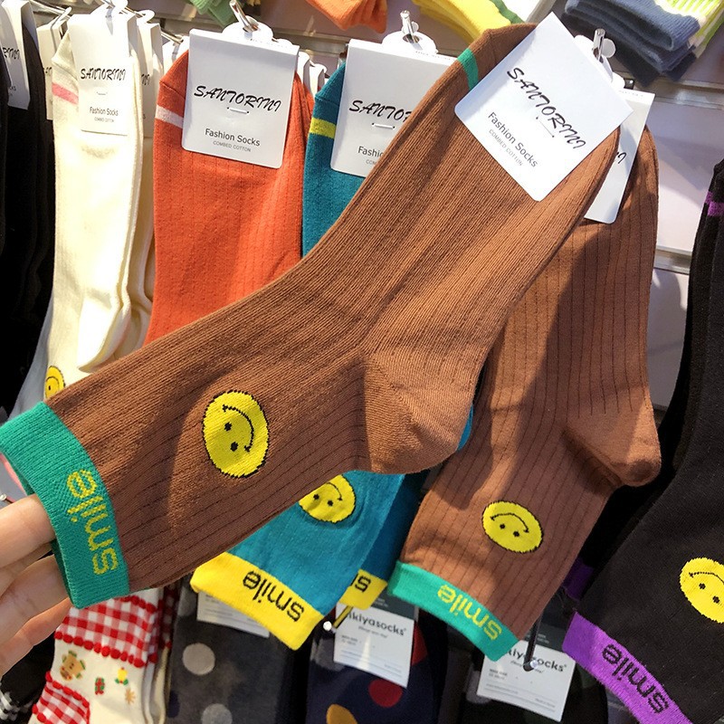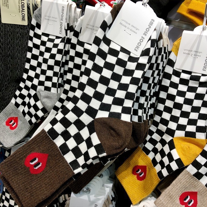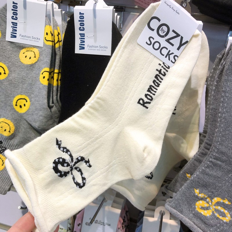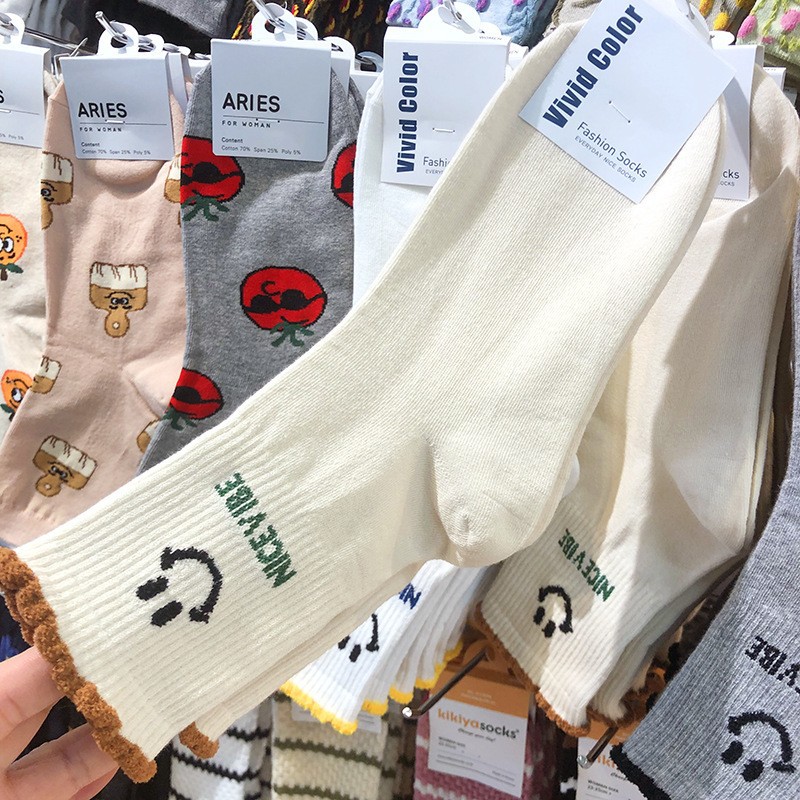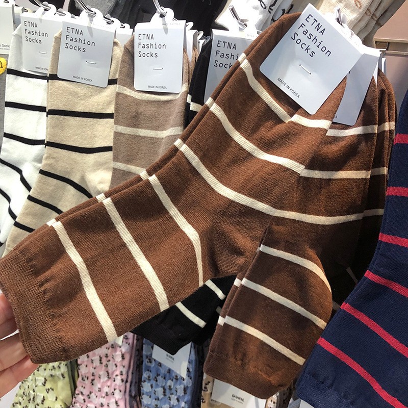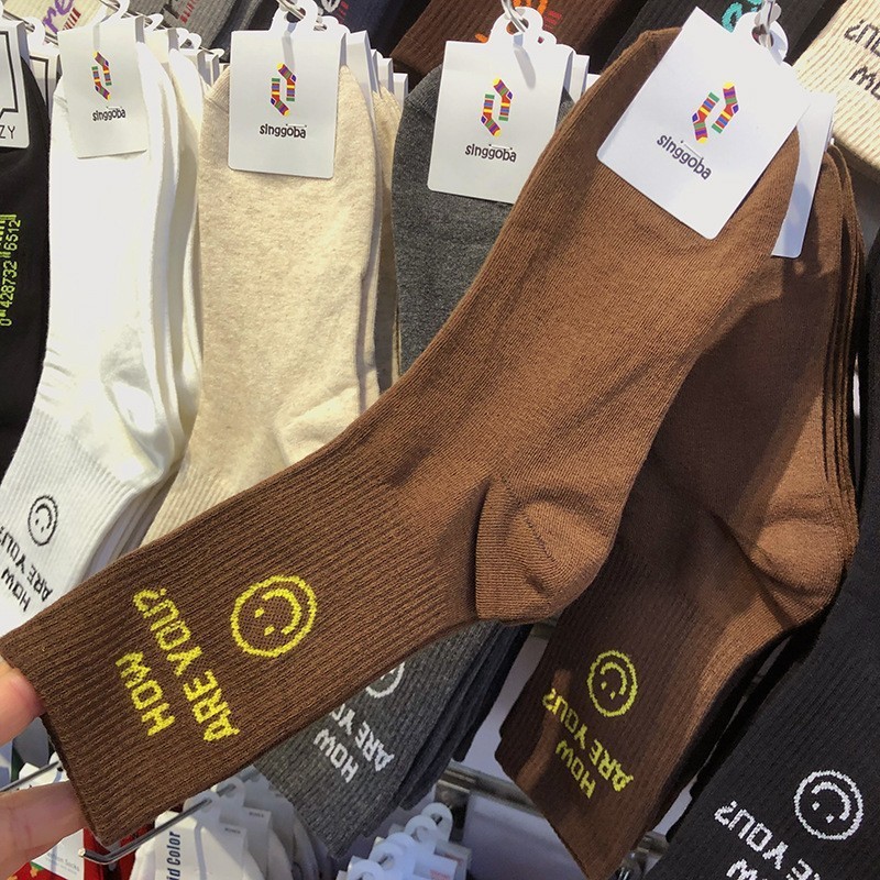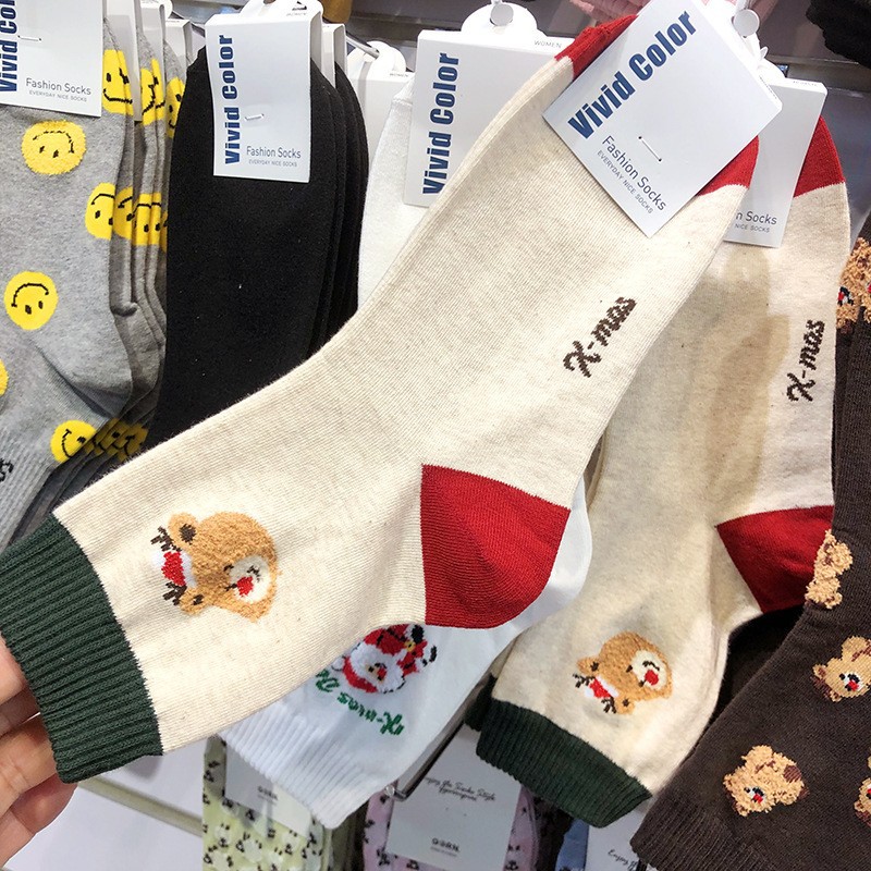 Maillard 컬러 다크 브라운 스타킹 한국 양말 동쪽 게이트 지구 따뜻한 색상 곰 러브 레터 여성의 중간 양말스토어 가기