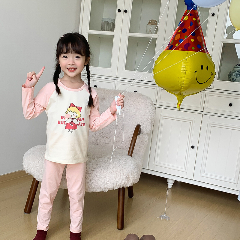 봄과 가을 어린이 잠옷 여아 가을 옷 긴 존스 세트 어린 소녀 열 속옷 아기 속옷 가정 옷스토어 가기