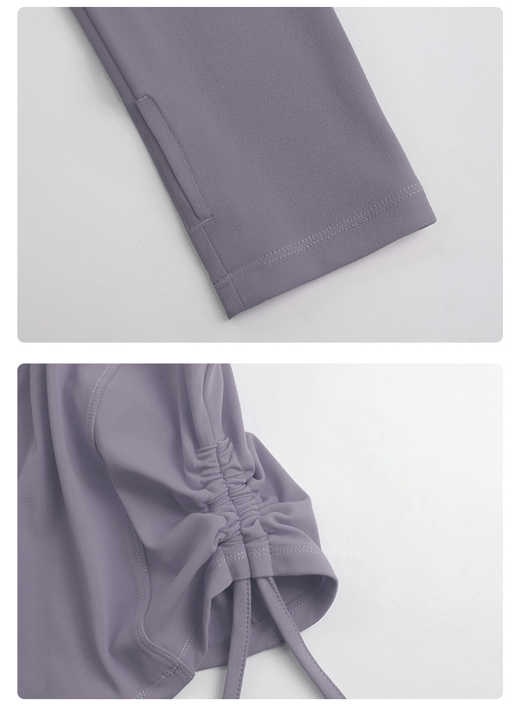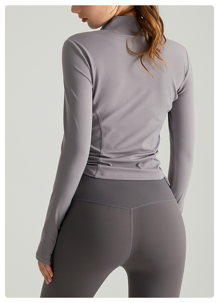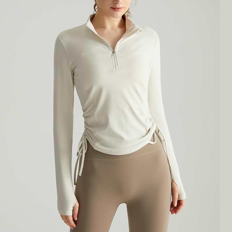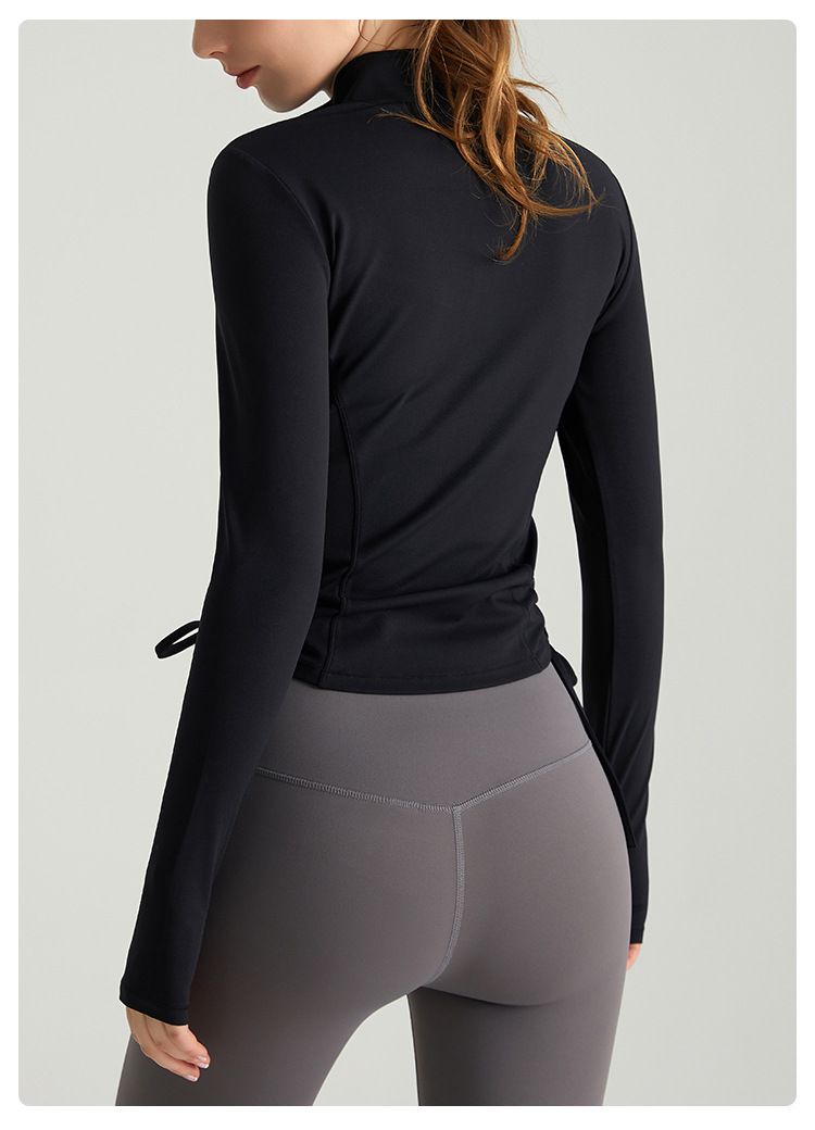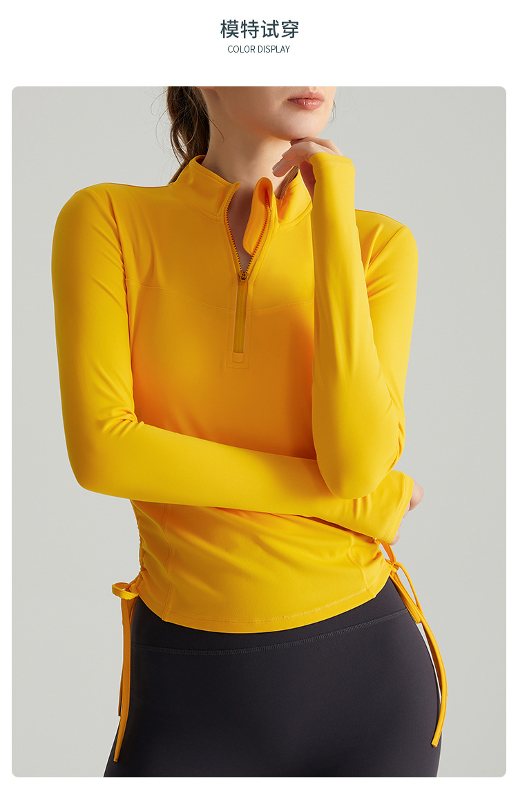 여성용 Chuanton 긴팔 피트니스 탑, 하프 지퍼, 스탠드 칼라, 드로스트링, 주름, 슬림핏, 아우터웨어, 스포츠 요가복