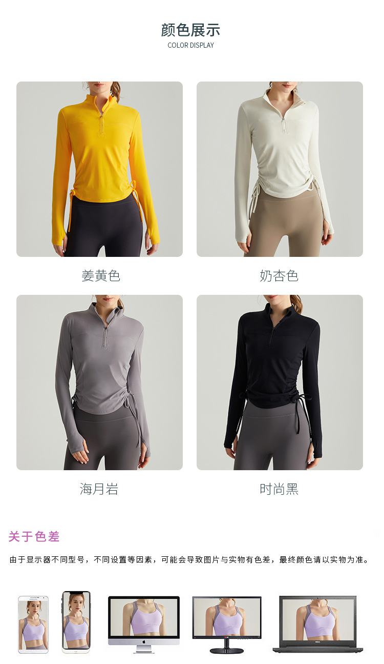여성용 Chuanton 긴팔 피트니스 탑, 하프 지퍼, 스탠드 칼라, 드로스트링, 주름, 슬림핏, 아우터웨어, 스포츠 요가복스토어 가기