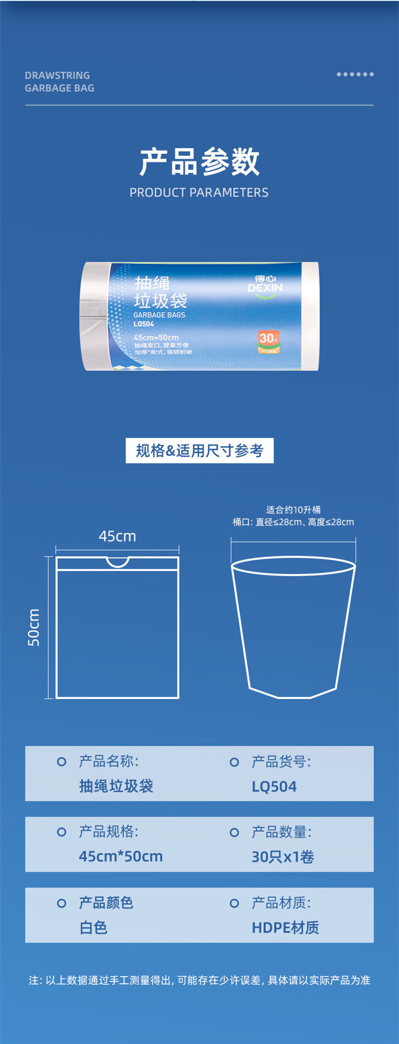 델리 델리 LQ504 졸라매는 끈 쓰레기 가방 홈 오피스 두꺼운 휴대용 자동 코일 청소 가방