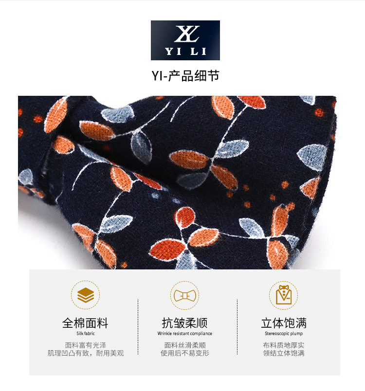 Yili 2023 제조업체 공급 솔면 인쇄 나비 넥타이 면화 나비 넥타이 도매 판매스토어 가기