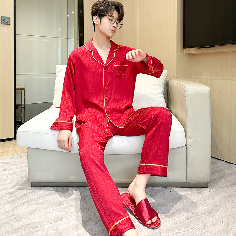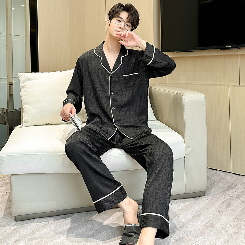 새로운 커플용 아이스 실크 잠옷 여성용 봄 가을 긴팔 한국 스타일 루즈핏 대형 사이즈 고급 라이트 럭셔리 홈웨어 세트 여름스토어 가기