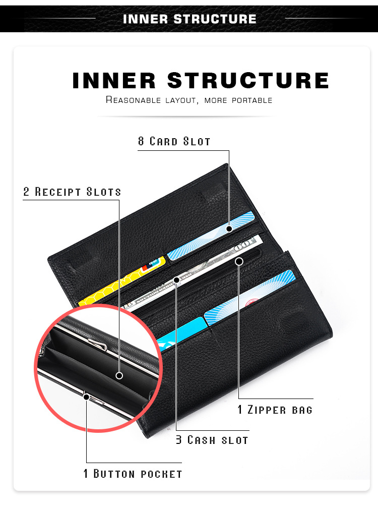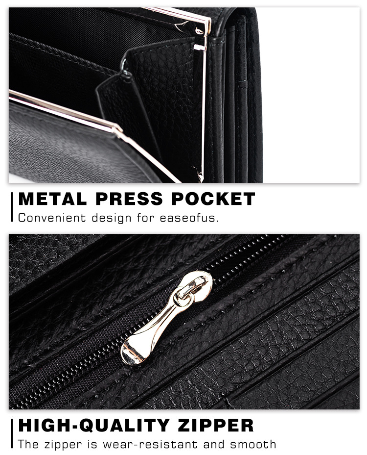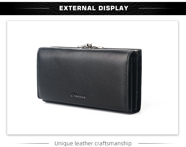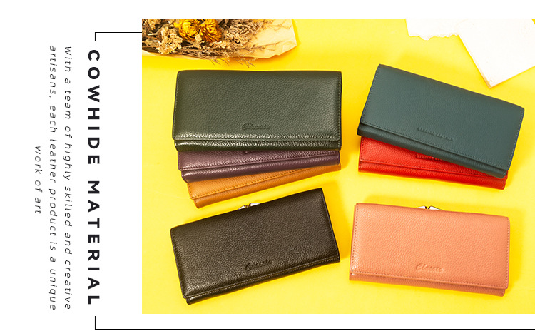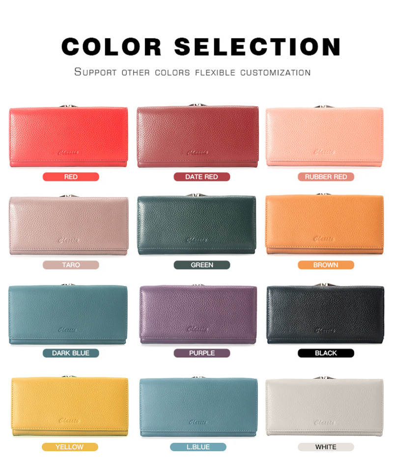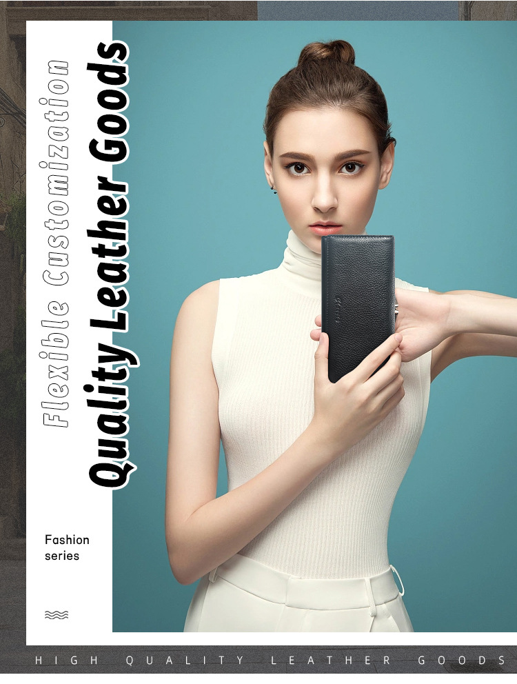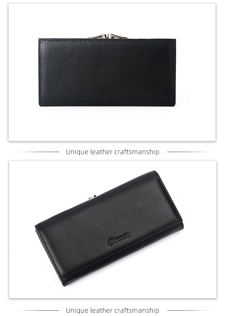 국경 간 정품 가죽 대용량 긴 지갑 여성용 지퍼 탑 레이어 Cowhide Wallet 여성용 긴 클립 대외 무역 클러치 백스토어 가기