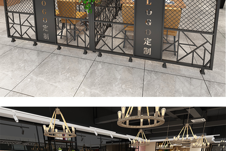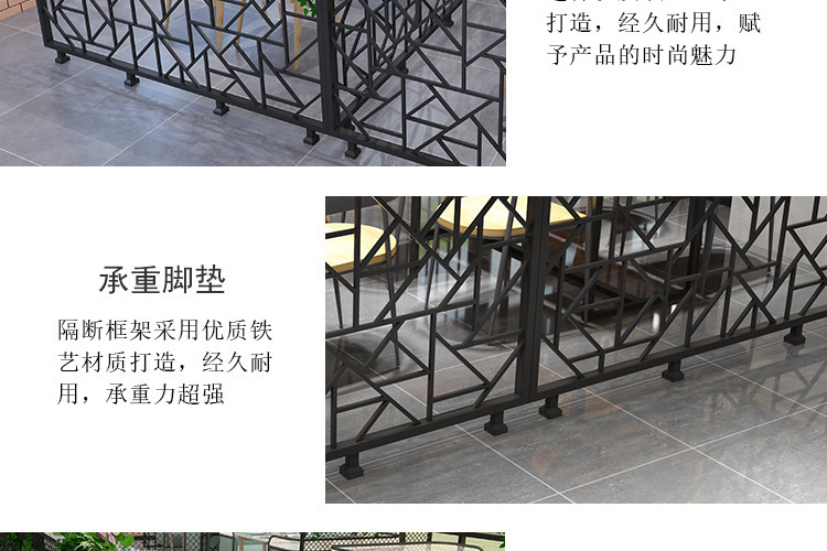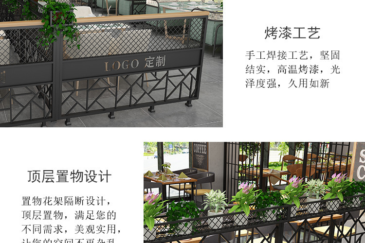 레스토랑 철 파티션 장식 꽃 랙 낮은 벽 난간 호텔 반 뜨거운 냄비 레스토랑 오두막 녹색 심기 꽃 바구니 화면