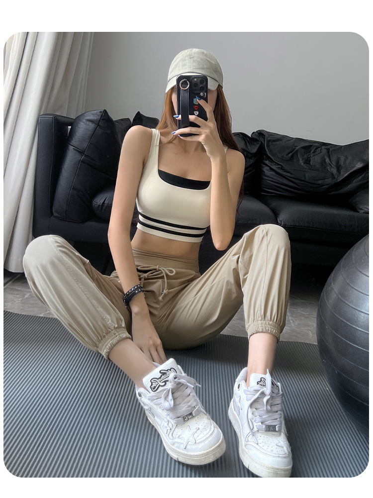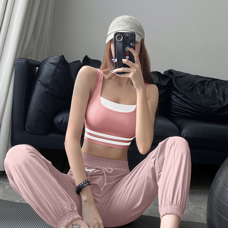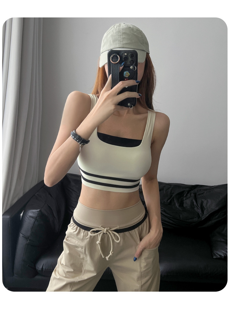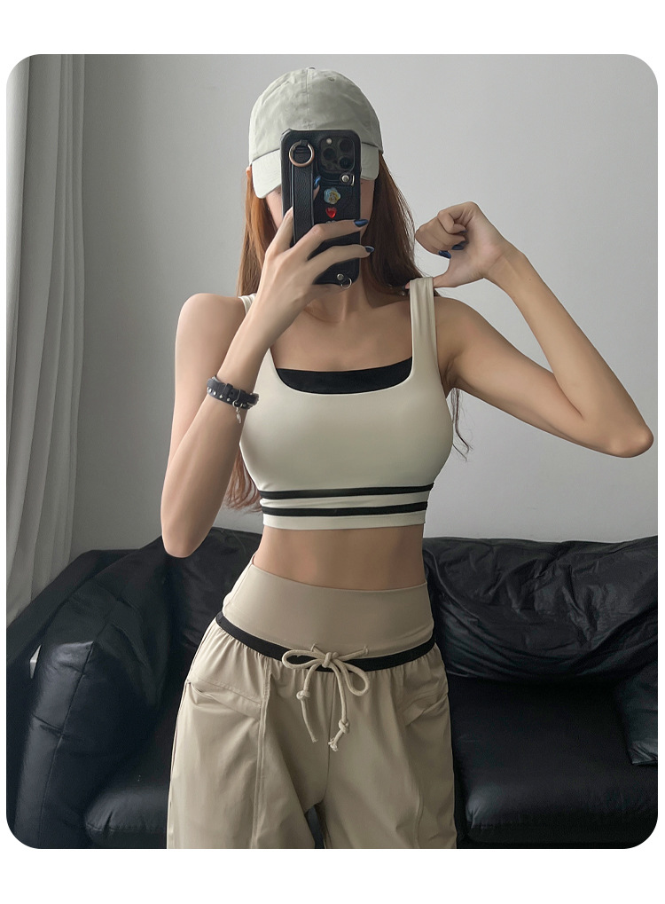 새로운 대조 색상 스포츠 속옷 여성의 고강도 충격 방지 모임 실행 요가 짧은 조끼 피트니스 아름다운 등 브래지어