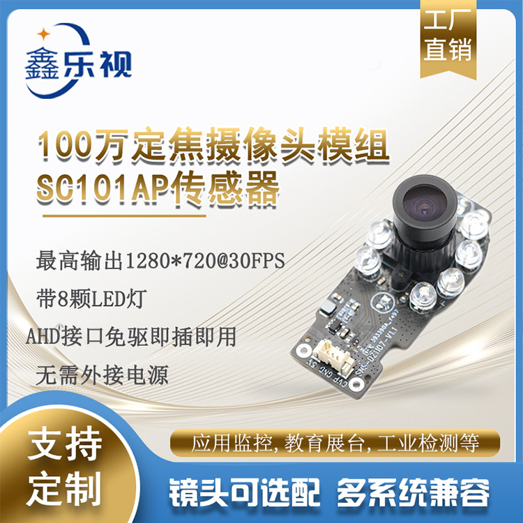 720p 30 프레임 SC101AP 센서 1 백만 8 LED 조명 AHD 인터페이스 카메라 모듈스토어 가기