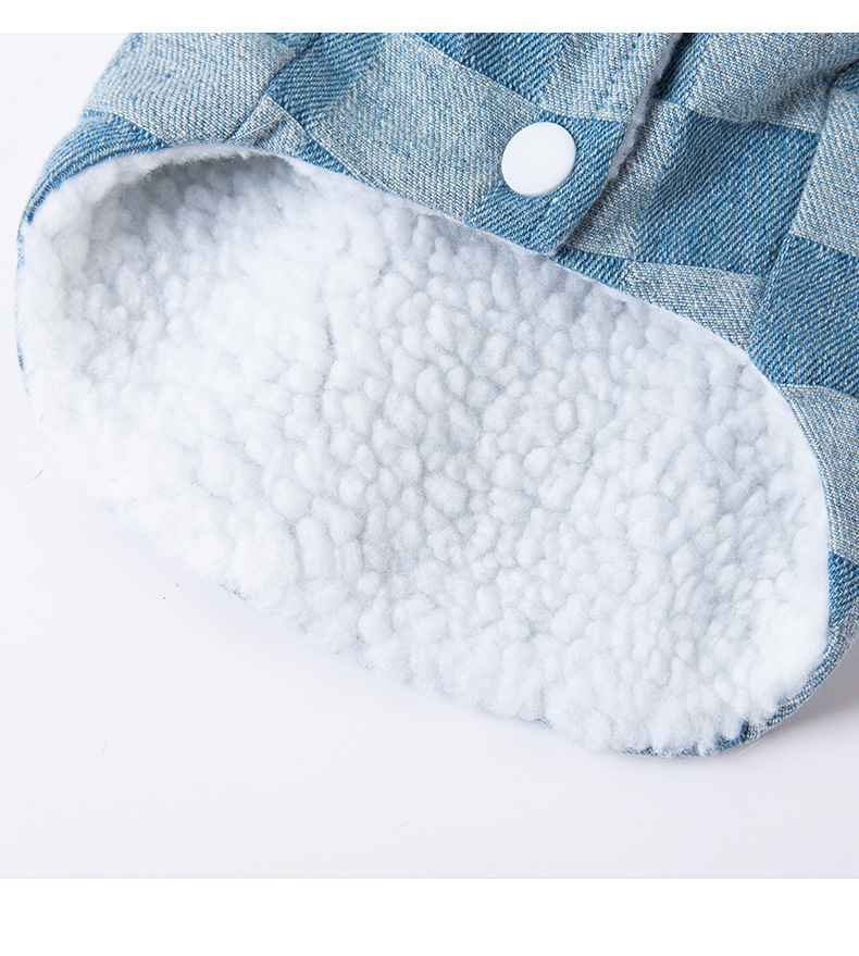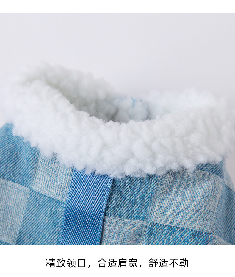 가을과 겨울 개 바둑판 데님 조끼 면 패딩 애완 동물 두꺼운 따뜻한 견인 캐주얼 스타일 고양이 옷