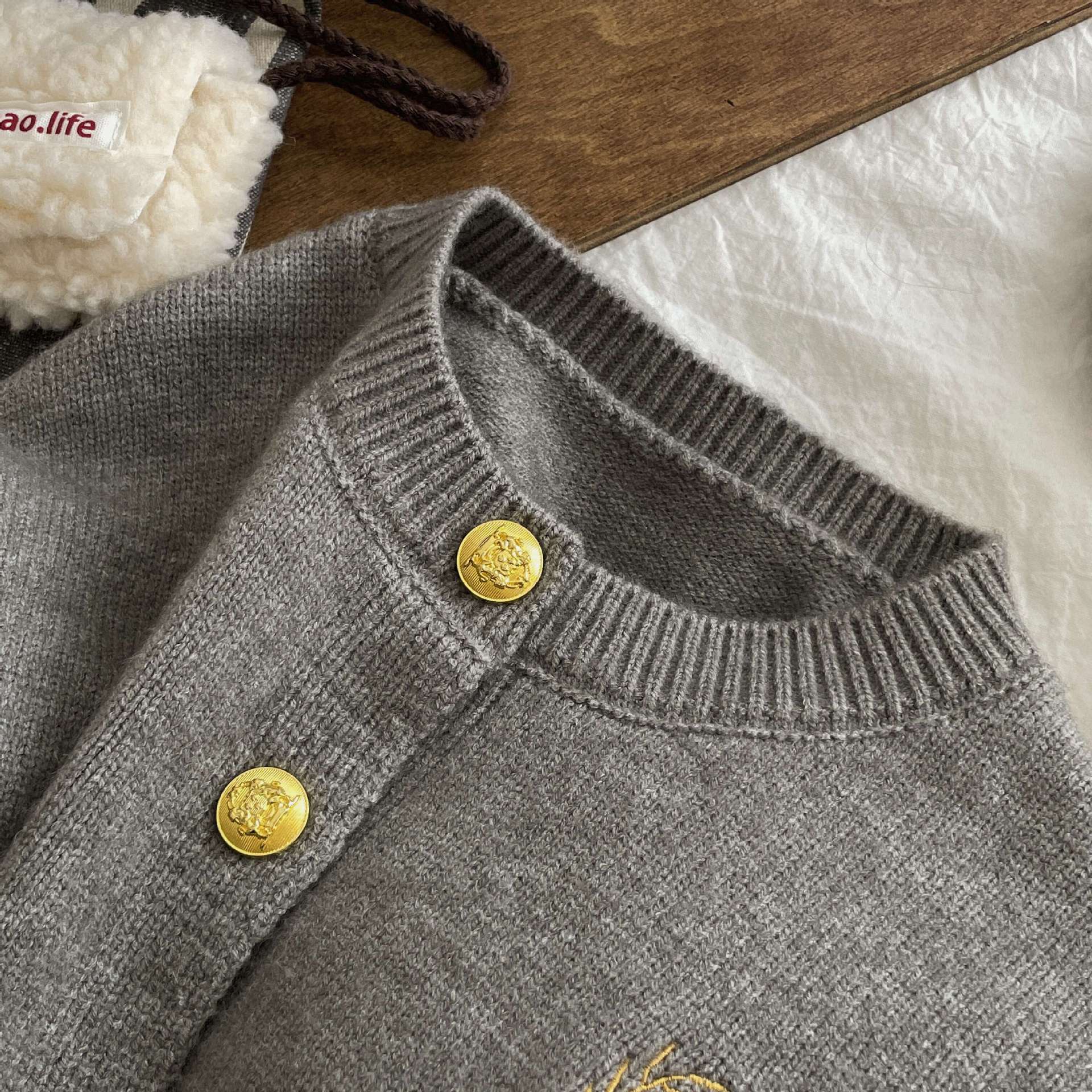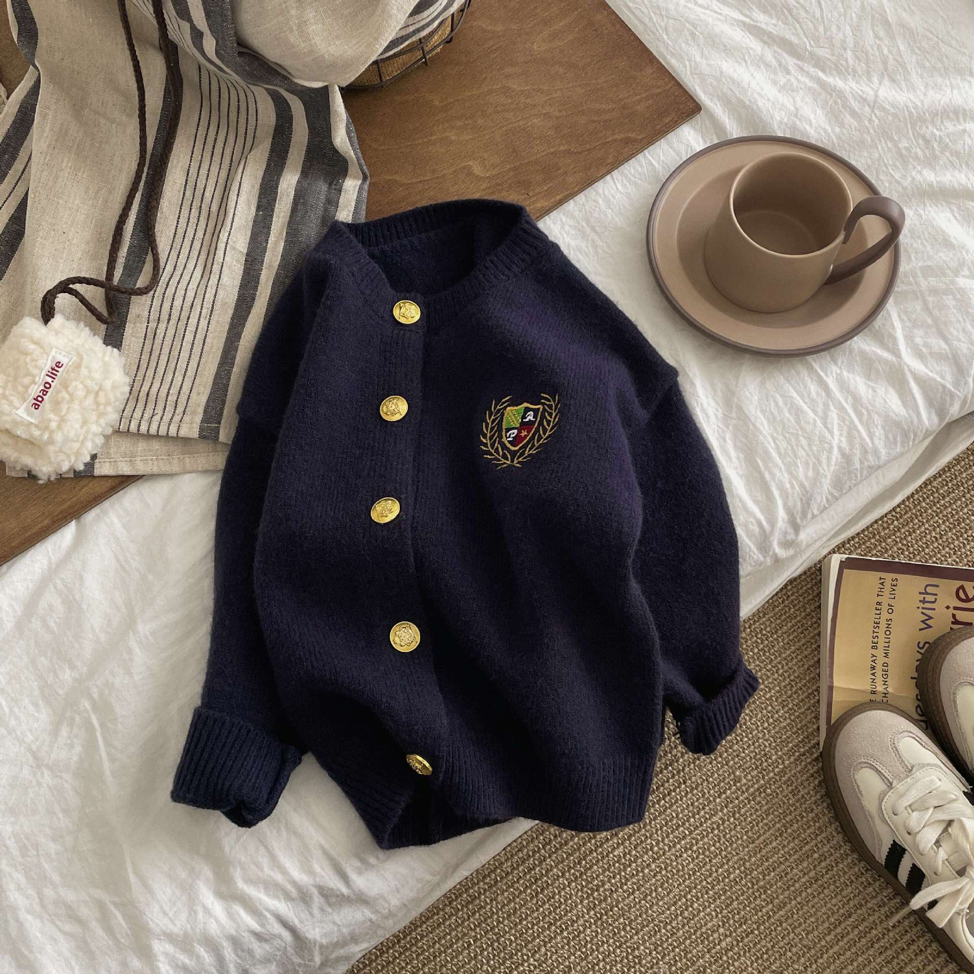 아동용 스웨터 카디건 2025 가을, 겨울 새로운 스타일 대학 스타일 카디건 탑 소년과 소녀를위한 자수 솔리드 컬러 다용도 자켓스토어 가기