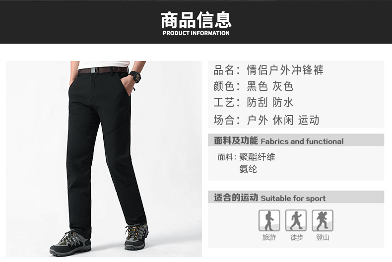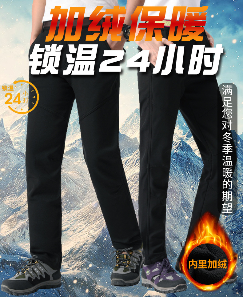 겨울 야외 폭행 바지 남성과 여성의 기모 두꺼운 따뜻한 부드러운 쉘 방풍 방수 양털 등산 바지 공장 직매스토어 가기