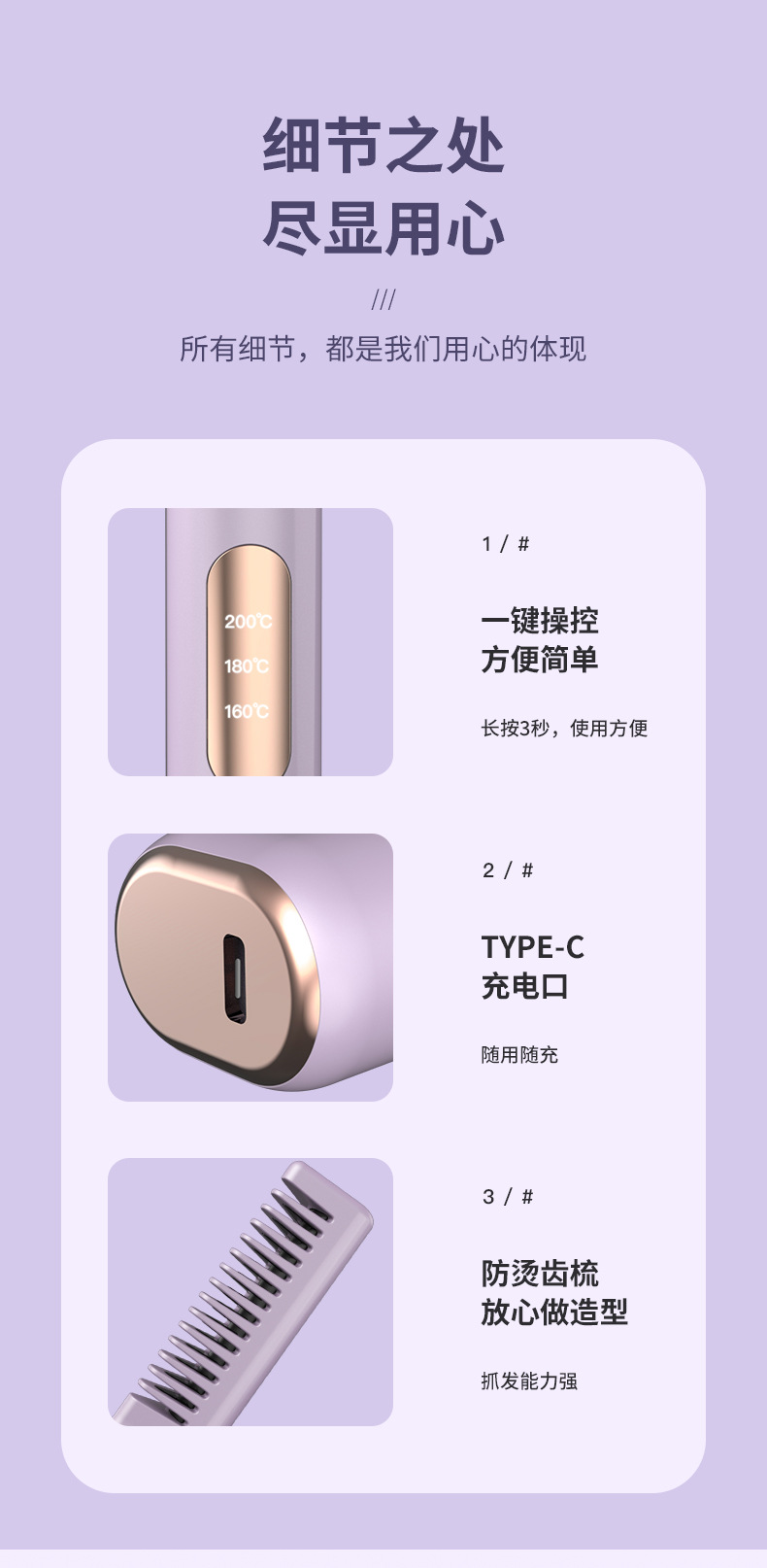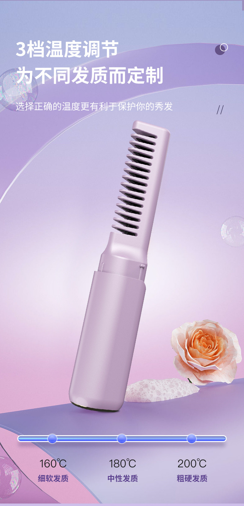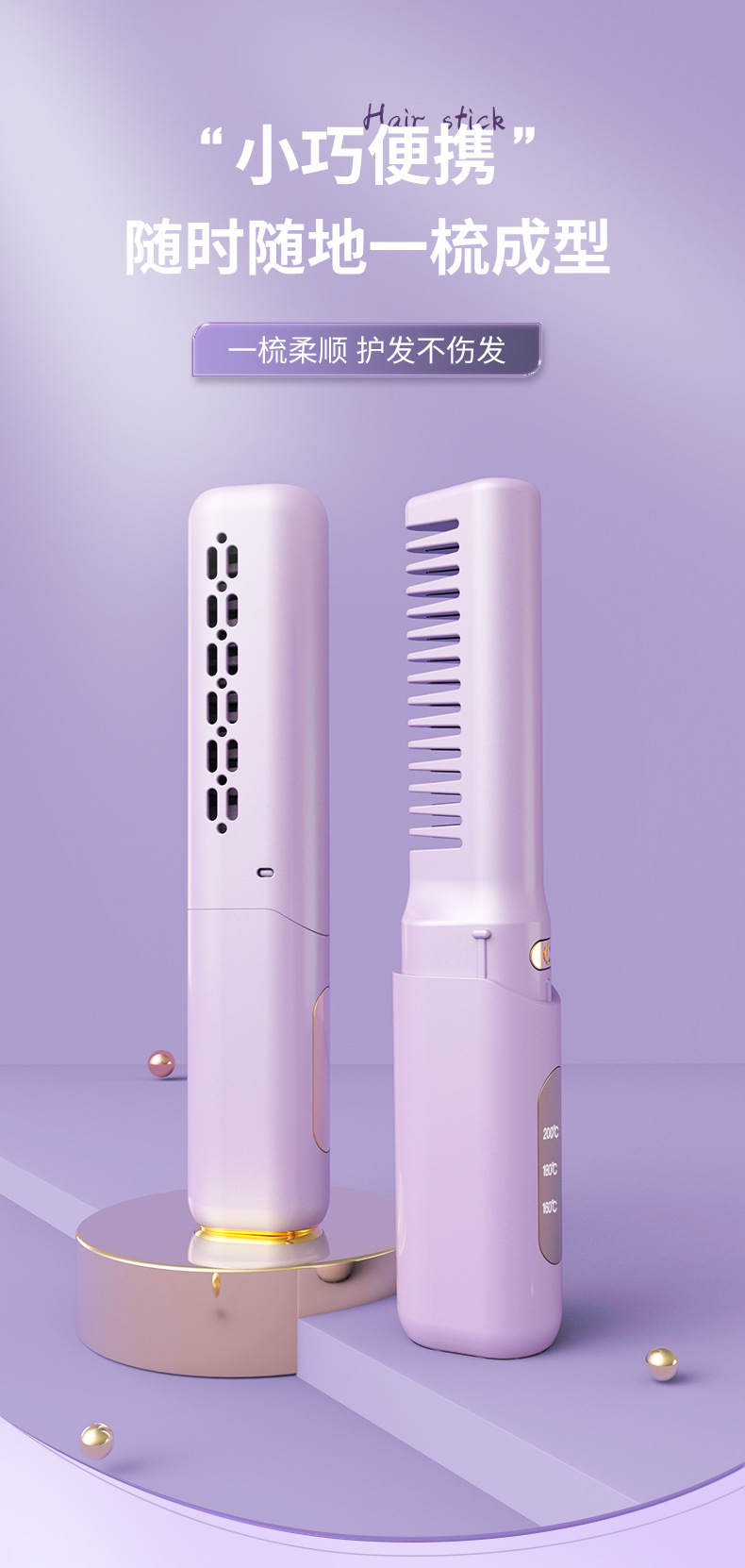 새로운 LCD 미니 스트레이트 헤어 빗 휴대용 무선 스트레이트 헤어 빗 롤 스트레이트 이중 목적 여행 스트레이트 헤어 빗