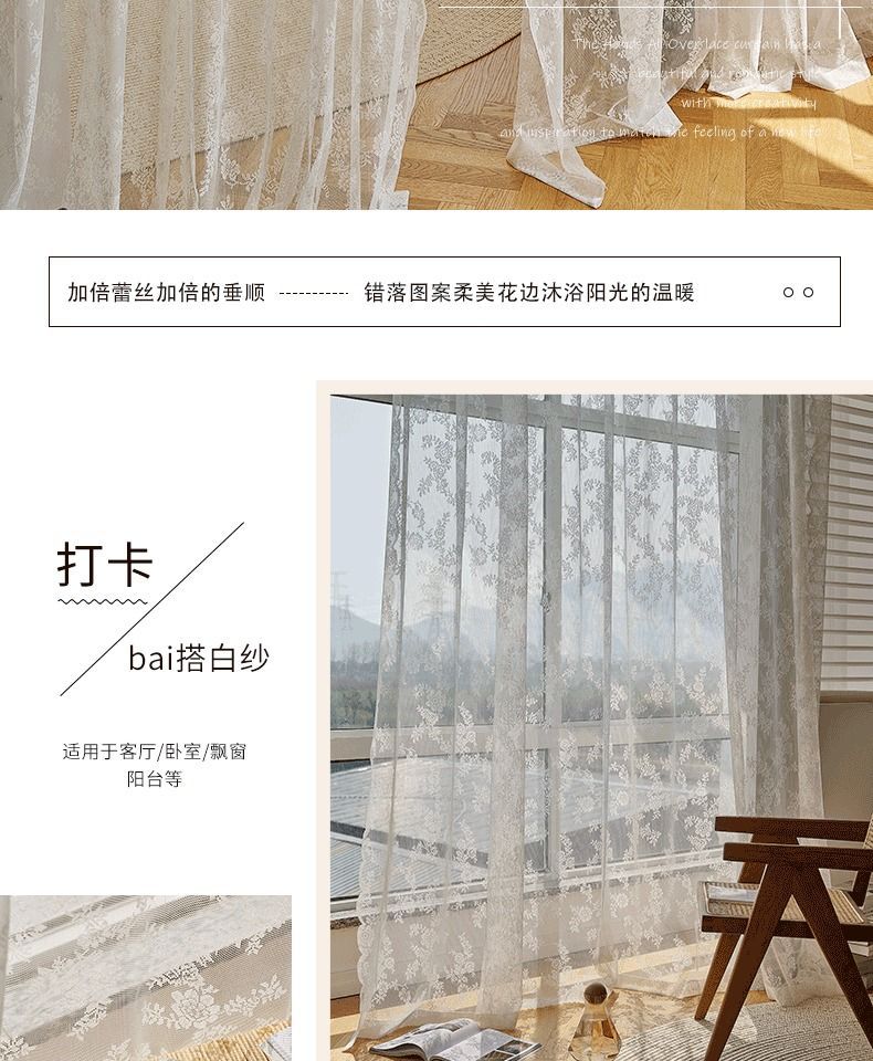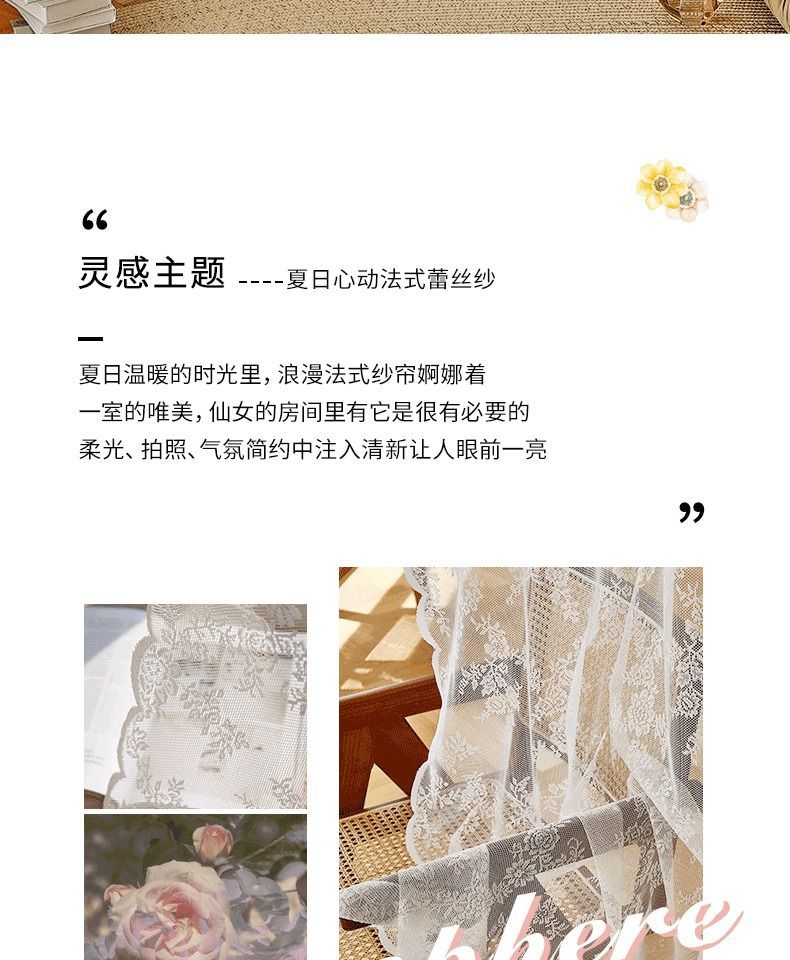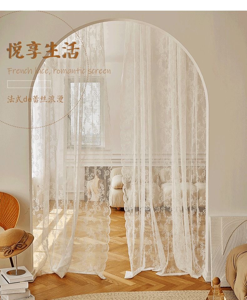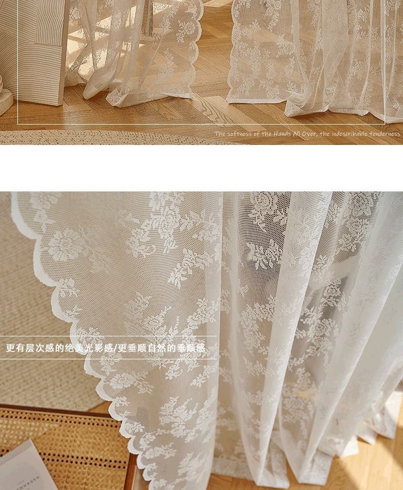 프랑스 목가적 레이스 거즈 소녀 공주 스타일 주방 파티션 창 커튼 화이트 펀치 프리 벨크로 커튼
