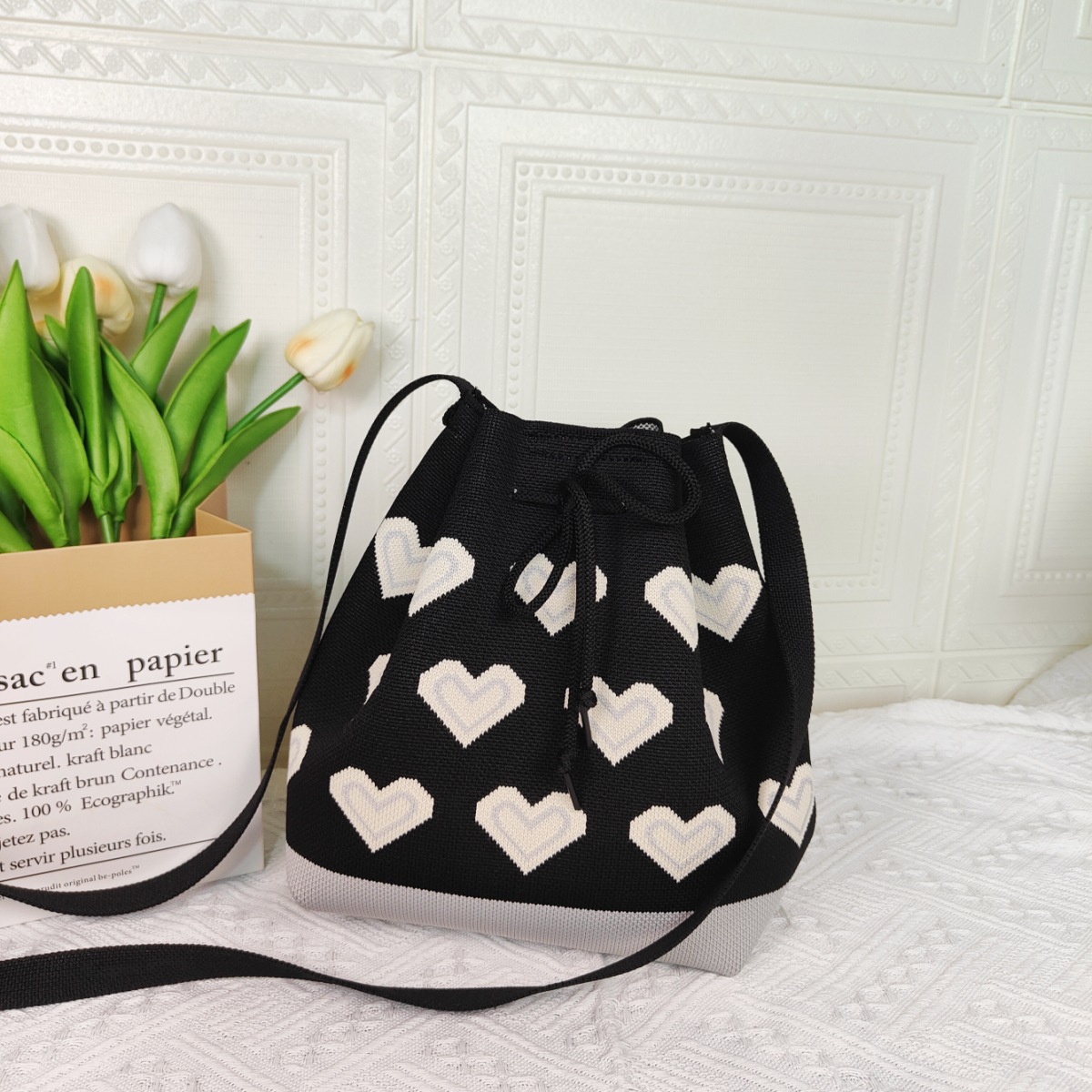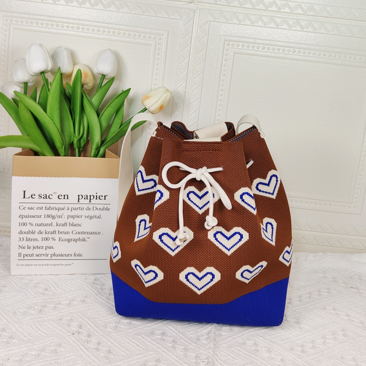 니트 러브 토트 백 2023 이른 가을 새로운 스타일 신선한 간단한 패션 니트 가방 세련된 숄더백스토어 가기
