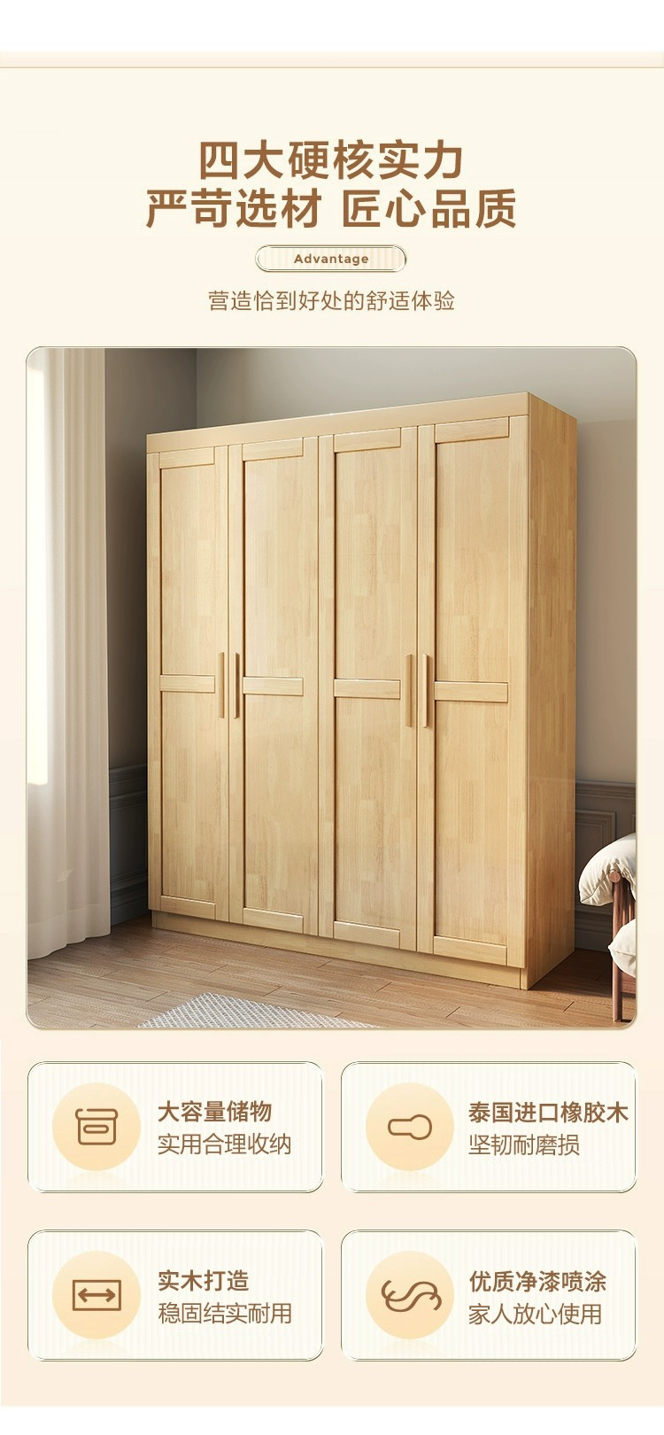 북유럽 단단한 나무 옷장 반대 문 작은 아파트 가정용 옷장 현대 간단한 침실 바닥 저장 캐비닛 로그 스타일