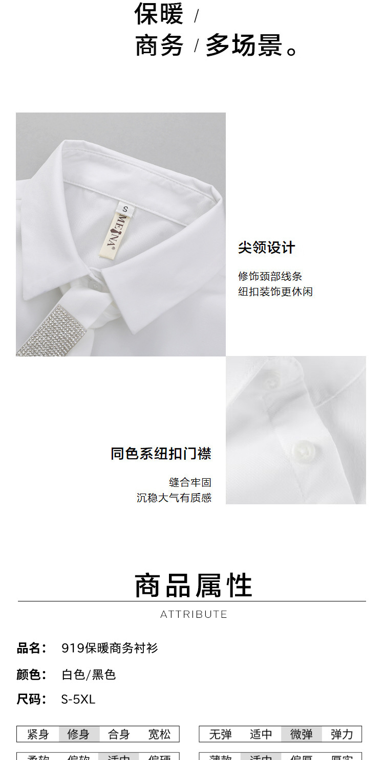 새로운 겨울 여성 비즈니스 의류 긴팔 셔츠 플러스 벨벳 흰색 셔츠 기질 통근 슬림 패션 비즈니스 의류스토어 가기