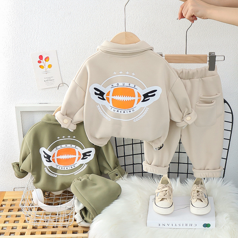 CA113-back 날개 기모 투피스 가을 아기 투피스 레저 세트 오스트리아 곡물의 외부 면 내부 레이어